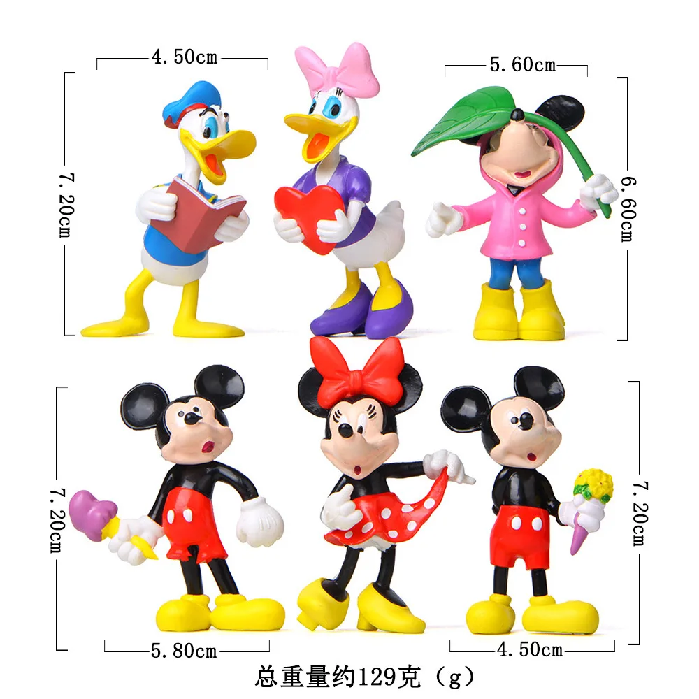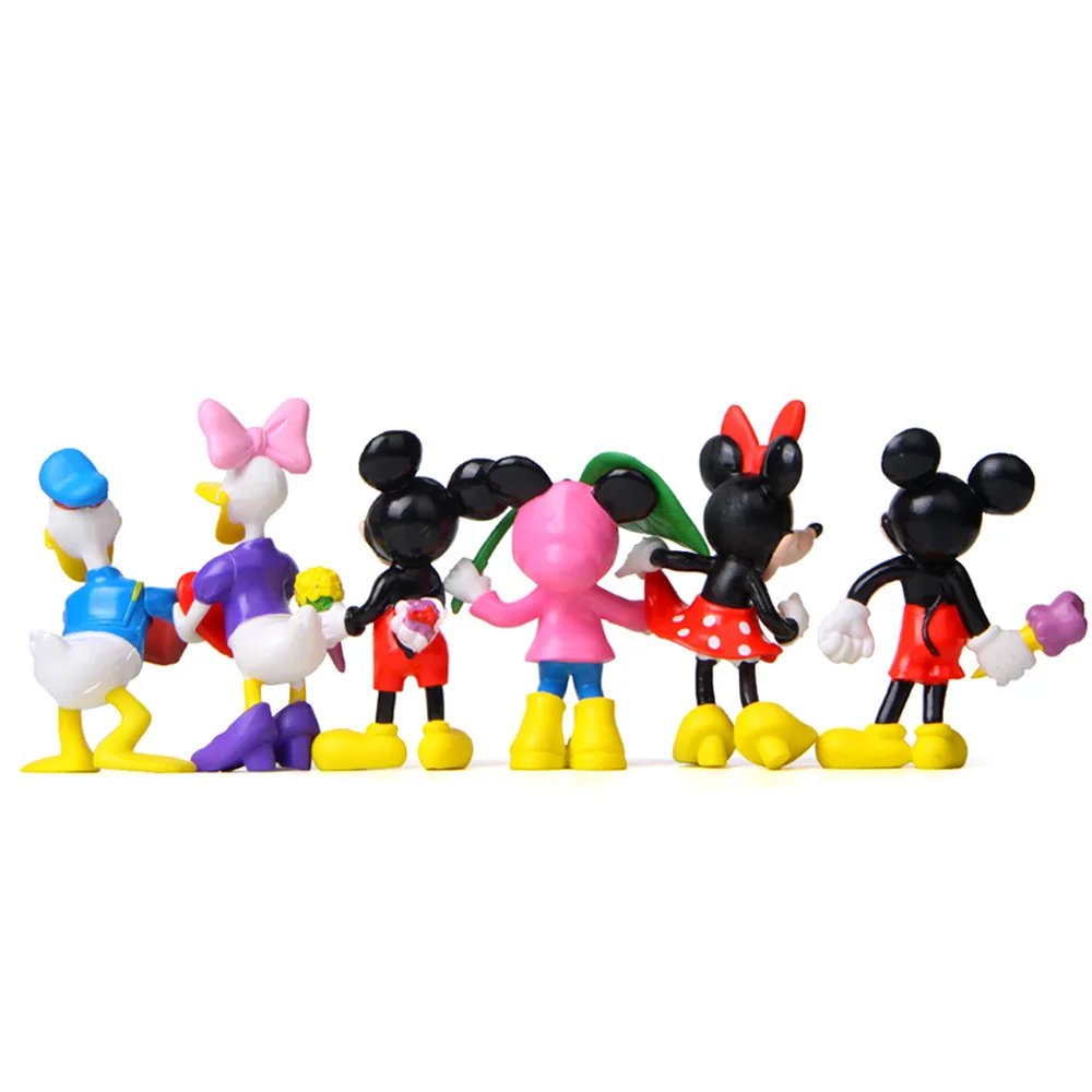 6 шт./лот, Зеленый лист, Микки и Минни, фигурки, пластиковые ПВХ Куклы для маленьких девочек, коллекция, фигурка, модель, подарки, набор игрушек для детей