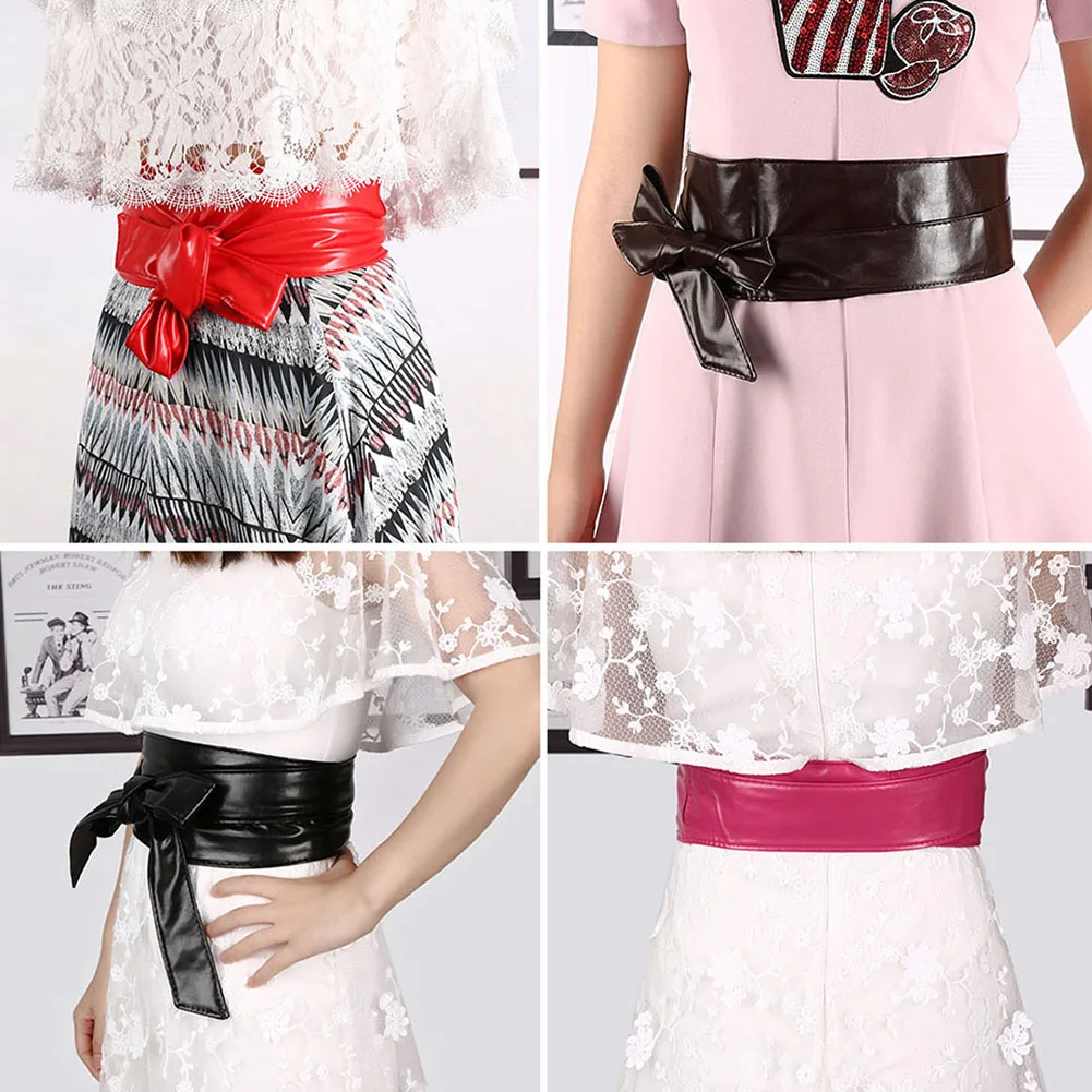1PC Fashion Women Soft Leather Wide Waist Belt Bow for Dress Clothes Accessories