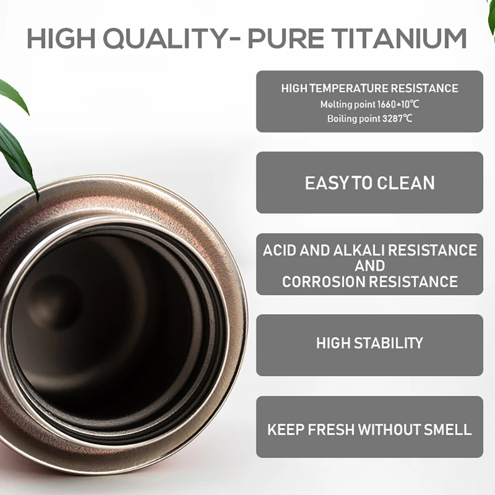 【Уход за температурой 】внутренний и внешний двухслойный чистый титан, бесшовная сварка, высокая вакуумная изоляция и холодная изоляция, поддерживает температуру напитков в течение нескольких часов.