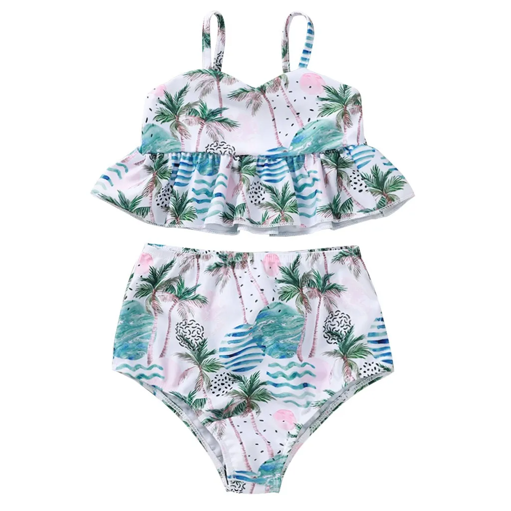 Летний купальник-бикини с принтом дерева для маленьких девочек; Комплект купальных костюмов