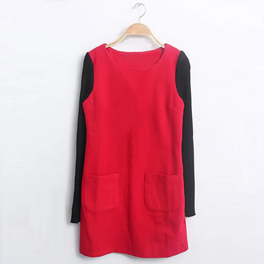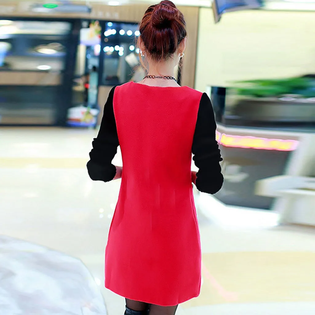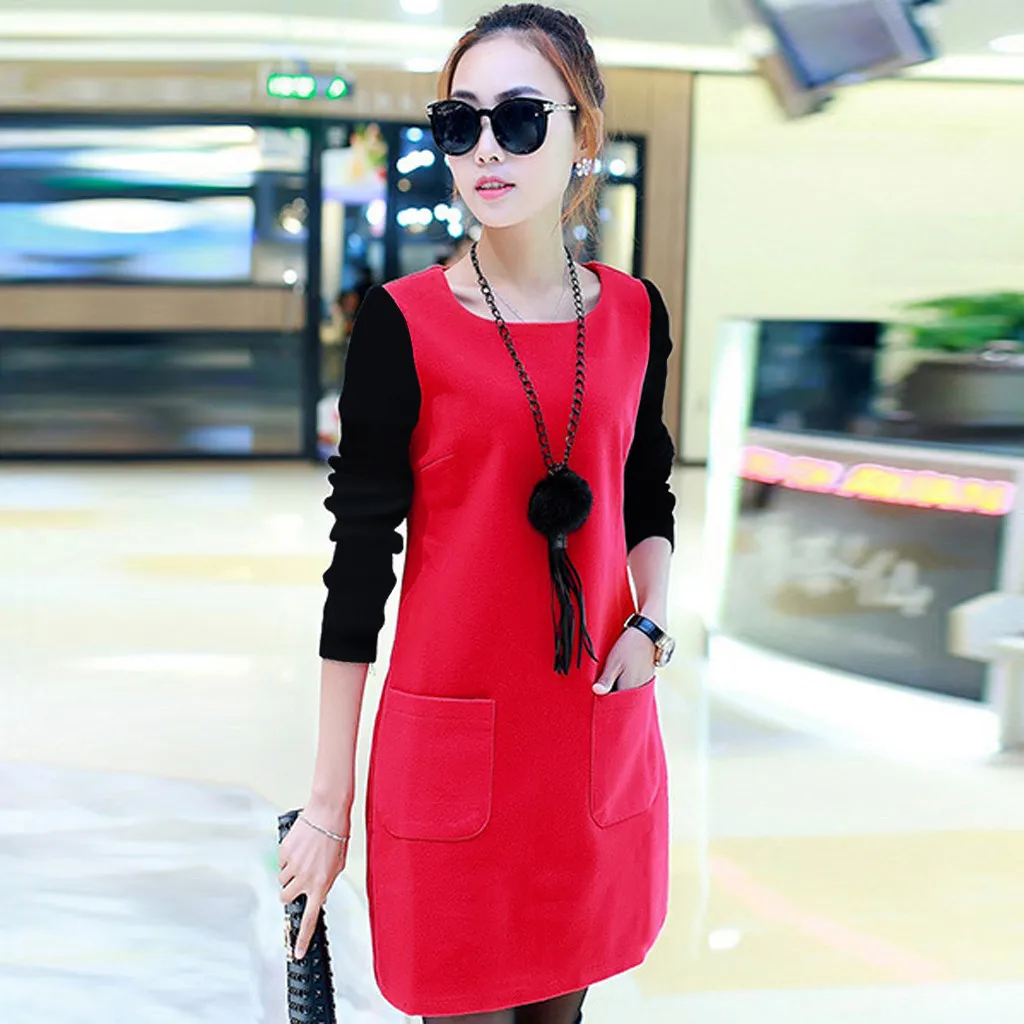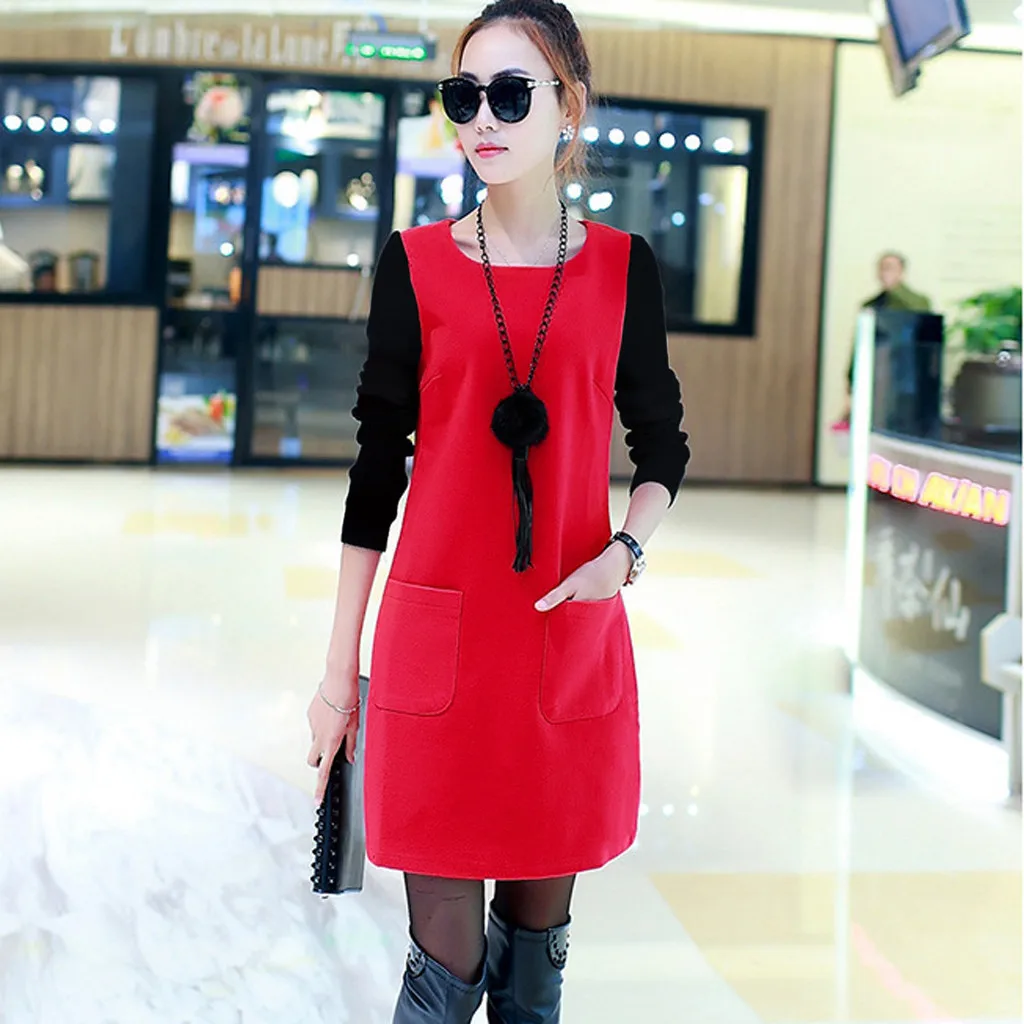 Особенности:Длинный рукав, Свободный, Сращивание, плюс бархат,Стильный и модный дизайн,Весна, осень и зимаПовседневное платье.