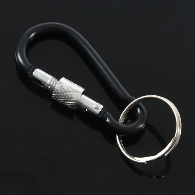 6 см длинный черный алюминиевый сплав винтовой замок Сплит кольцо брелок Карабин Крюк