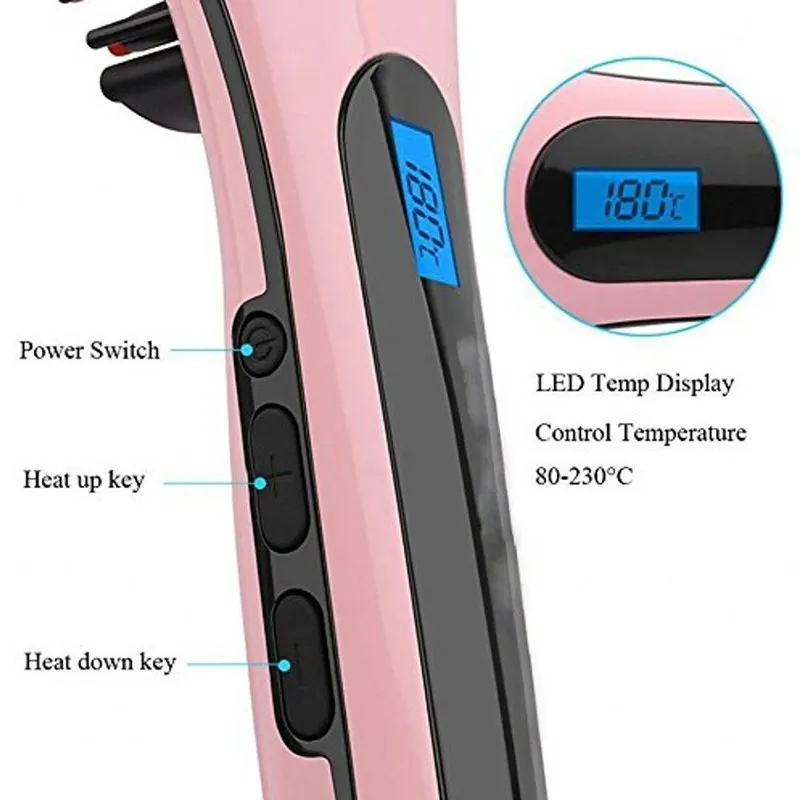 Описание размера: общая длина изделия составляет 31 см, Длина нагревательного корпуса-3,5 см, а длина сетевого шнура-2 м Нагреватель: PTC Материал нагревательной пластины: желтая пластина/супер жесткая пластина Мощность продукта: 45-65 Вт Изделие напряжение: 110 V-240 V 50Hz-60Hz Температура изделия: 150-210 градусов Метод сборки кабеля питания: вращение на 360 градусов