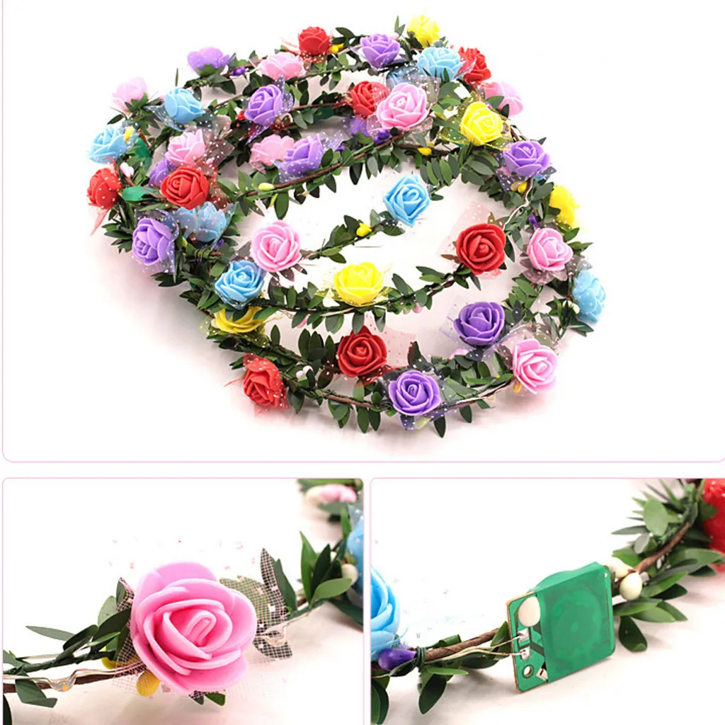 Светодиодная лента для волос с цветком, корона, венок, гирлянда для волос, Свадебная вечеринка
