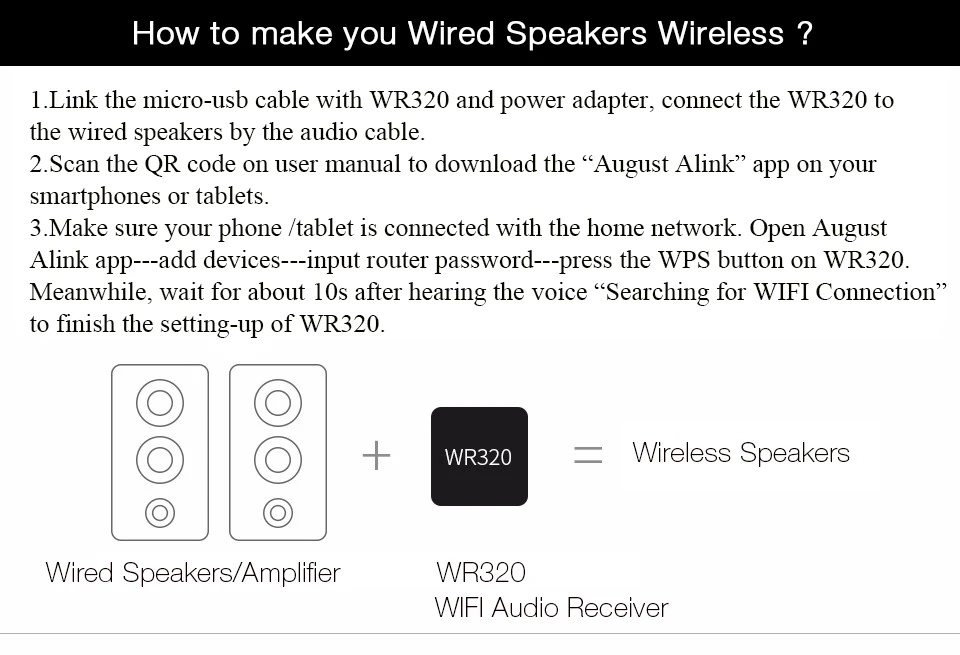 Потоковый кристально чистый звук без потерь на протяжении всего вашего дома-Управляйте индивидуальными или комбинированными плейлистами и потоковыми сервисами для нескольких динамиков из приложения iPhone или Android Наслаждайтесь собственной музыкой, лучшими потоковыми Сервисами и Интернет-радио-Spotify, Tidal, Tune In и iHeart Radio можно передавать по вашему дому Связывайте несколько динамиков по комнате или Управляйте ими отдельно-Используйте портативные устройства android или apple для настройки групп динамиков августа и управления тем, что играет в каждой комнате Добавьте ваш текущий стерео к Wi-Fi звук Системы-подключается к вашему aux в через 3,5 мм или оптического кабеля Быстрая и простая Настройка одним касанием с помощью технологии WPS-просто нажмите кнопку WPS и введите пароль Wi-Fi для интеграции приемника в домашнюю сеть в течение 10-15 секунд. Приемник оснащен подключением локальной сети (Ethernet). Он может быть подключен к маршрутизатору или сети через кабель, который мгновенно интегрирует его в вашу домашнюю сеть и обеспечит наиболее стабильную потоковую производительность. Приемник будет доступен для любых устройств в домашней сети, проводных или через WiFi. Приемник также будет работать как ретранслятор WiFi-расширение диапазона вашей домашней сети и может быть защищен паролем для безопасности WR320 Звуковой адаптер с WIFI с кабелем Toslink Male-Male из оптического волокна