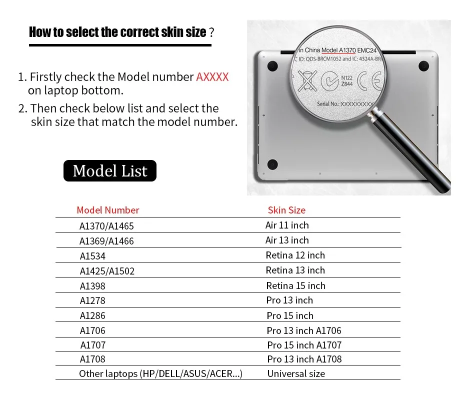 Если вы выбираете «универсальный размер», но не оставляете нам сообщение о желаемом размере, мы отправим вам наш стандартный Размер 38*27 см. Спасибо! Что касается чехла для MacBook, то существует небольшая разница между европейской и американской версией, если вы не запишете нам версию EUversion или US, мы отправим вам НАПРЯМУЮ версию us!