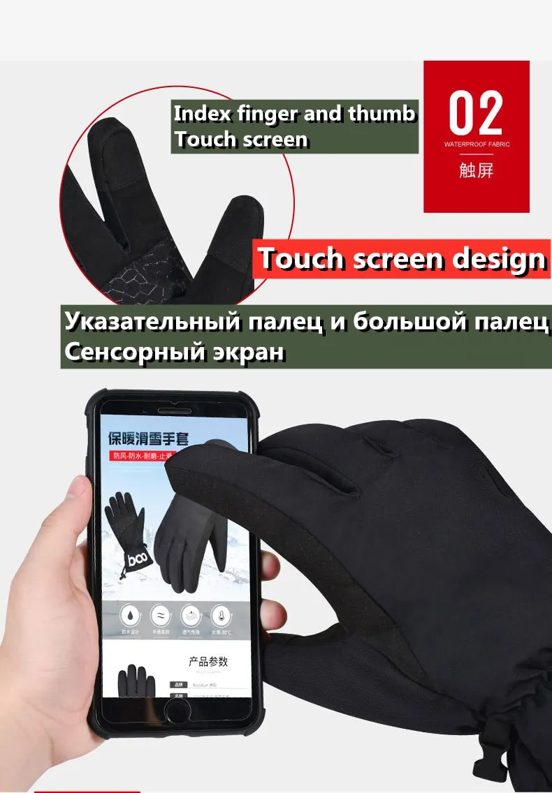 1 пара перчатки для катания на лыжах и сноуборде с сенсорным экраном, ветрозащитные мотоциклетные Водонепроницаемые зимние мужские и женские перчатки для пеших прогулок, рыбалки, катания на лыжах, черные L