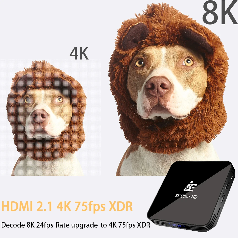 ТВ-приставка transpeed Android 9,0 8K 4K Youtube Bluetooth 4,1 1000M 5G wifi Amlogic S905X3 4 ГБ 32 ГБ 64 Гб телеприставка Аппаратная конфигурация Процессор: Amlogic S905X3 64-разрядный четырехъядерный ARM®Кортекс™A55 GPU: G31™MP2 RAM: 4G ROM: 32G/64G/128G Видео: 8K/4K /1080P/720P/480P 8K 24fps,4K 75fps, 1080p 75fps декодирование видео, UHD, HDR +, Airplay, Miracast Включая H265/HEVC Main/Main 10 profile level5.2 High-tier; Wi-Fi: 802,11 b/g/n/AC, двухдиапазонный WIFI + Bluetooth 4,1, 2,4G/ 5G (802,11 b/g/n/AC wifi примерно в 5 раз быстрее, чем 802,11 b/g/n wifi, это реальный 5G wifi). Карта памяти: поддержка tf-карты, до 32 Гб HDMI: HDMI 2.0a; HDCP2.2 OTG: Да, поддержка онлайн-обновления Хост: USB 2,0/3,0 Операционная система: Android 9,0 Видеовыход: HDMI Bluetooth: Bluetooth 4,1 Есть 2 варианта для ТВ-приставки TR X3 AIR S905X3: 1: 4 Гб + 32 ГБ + 2,4 ГГц и 5 ГГц двойной Wifi( 1000 м wifi )+ Bluetooth4.1 + 100 м Ethernet 2: 4 Гб + 64 ГБ + 2,4 ГГц и 5 ГГц двойной Wifi( 1000 м wifi )+ Bluetooth4.1 + 100 м Ethernet