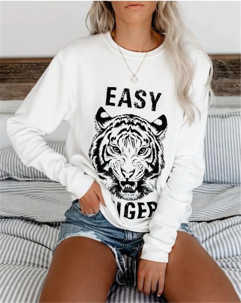 Осенняя и зимняя новинка, хит продаж, толстовка с принтом головы тигра, Женская толстовка с круглым вырезом и длинным рукавом, свитер, пуловер, женские осенние и зимние топы