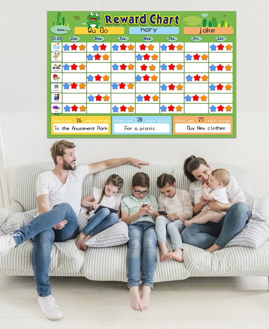 Мультфильм несколько детей поведение Chore Star награда диаграмма ответственность расписание стикеры на стены, холодильник магниты карты Семейный календарь