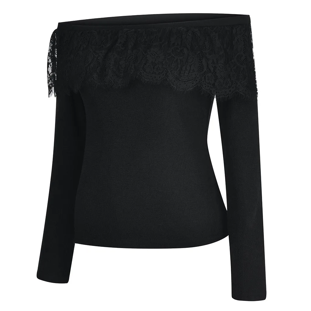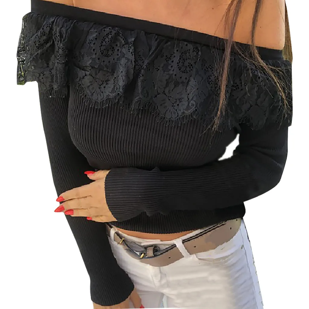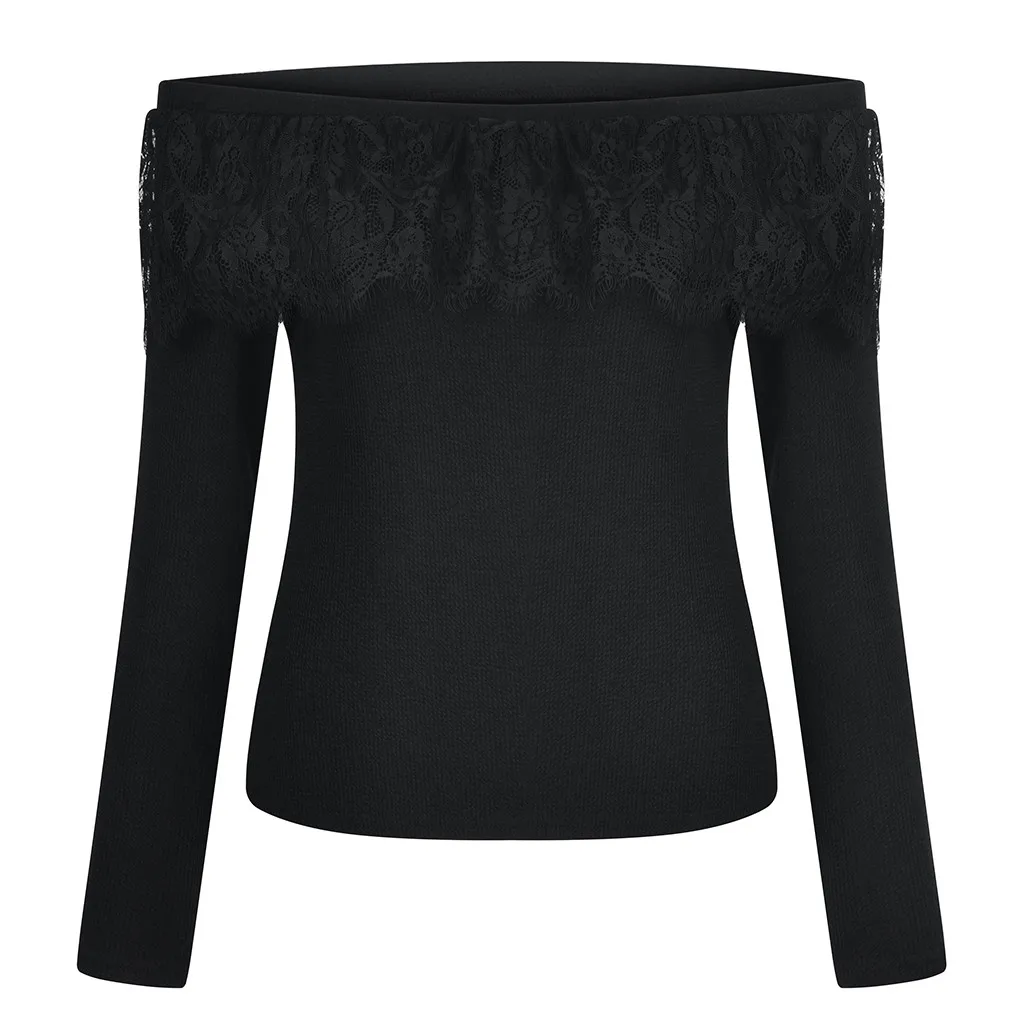 Женский однотонный с открытыми плечами с длинным рукавом кружевной лоскутный пуловер Топы рубашка