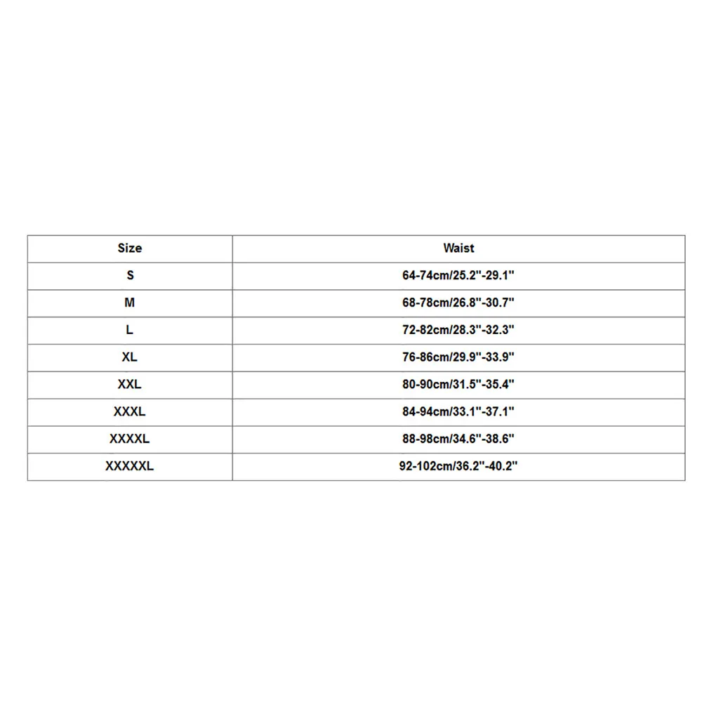 Размер Талия S 64-74 см/25,2 "-29,1" М 68-78 см/26,8 "-30,7" L 72-82 см/28,3 "-32,3" XL 76-86 см/29,9 "-33,9" XXL 80-90 см/31,5 "-35,4" XХХL 84-94 см/33,1 "-37,1" XXXXL 88-98 см/34,6 "-38,6" XXXXXL 92-102 см/36,2 "-40,2"