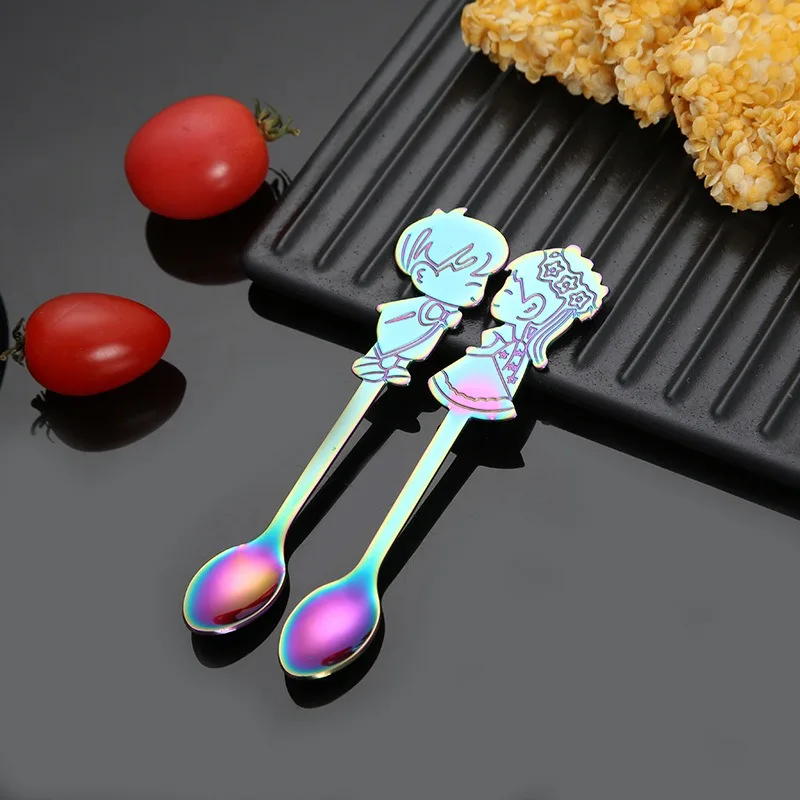 2 шт. нержавеющая сталь кофейная чайная ложка для перемешивания ложка для смешивания любителей мультфильмов свадебные подарки на день Святого Валентина ложка для молочного коктейля