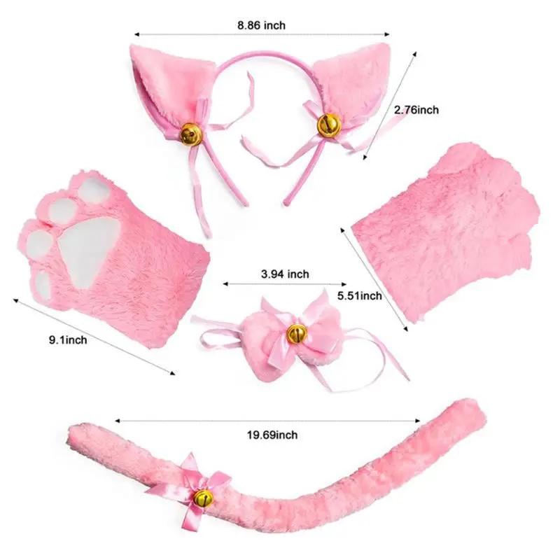 Женский костюм для косплея, плюшевый ободок с колокольчиком и бантом, перчатки-чокер