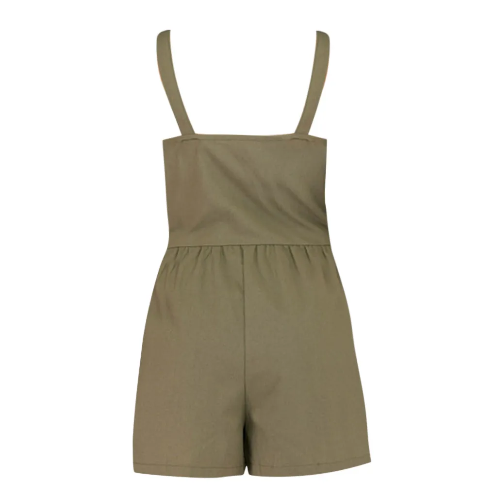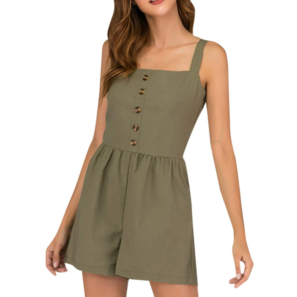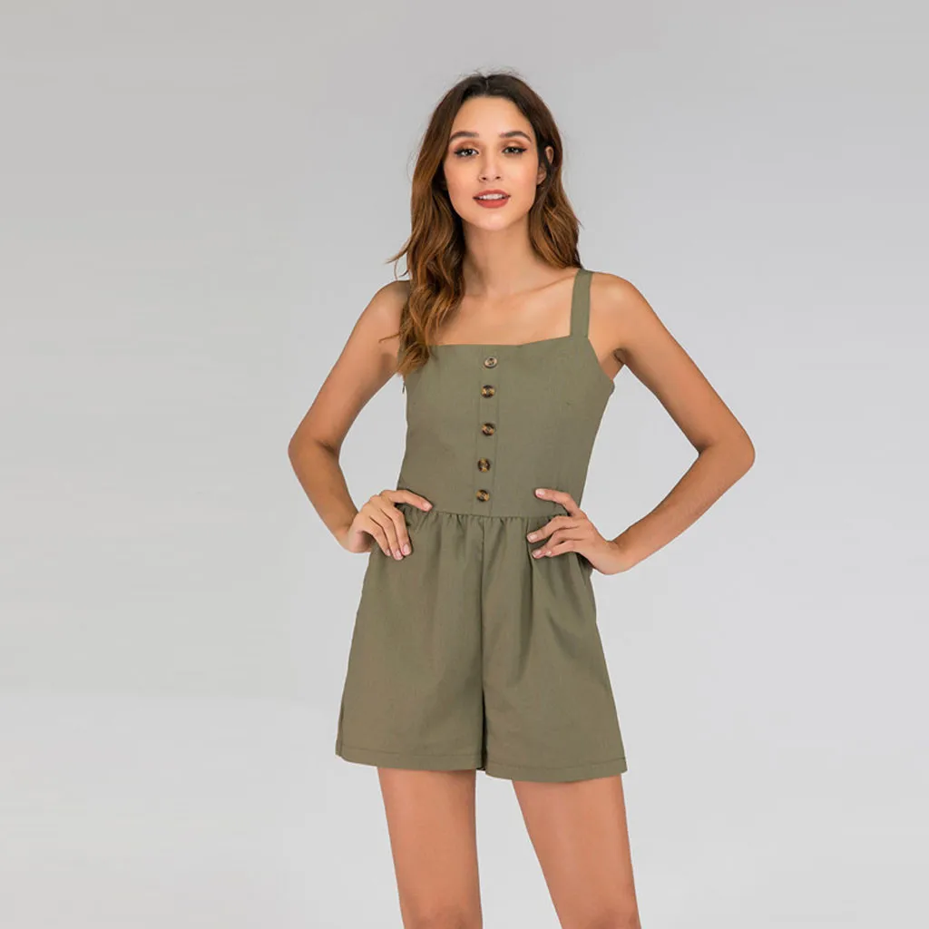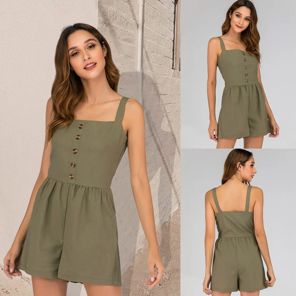 Женский Повседневный однотонный комбинезон без рукавов, Летний комбинезон на пуговицах с открытой спиной, 2020