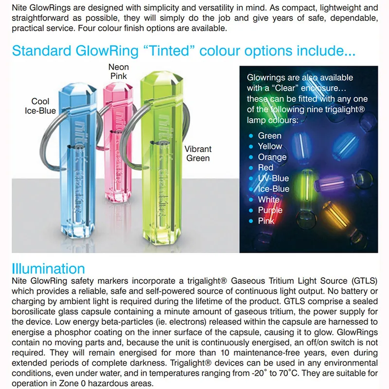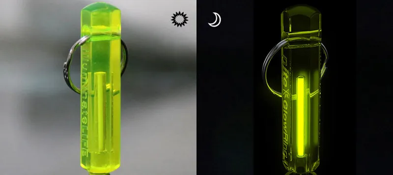 Он содержит небольшую стеклянную трубку для уплотнения небольшого количества газового трития, трития газа, излучаемого электронным возбуждающим флуоресцентным покрытием, излучающий светильник и другие аналогичные флуоресцентные брелки