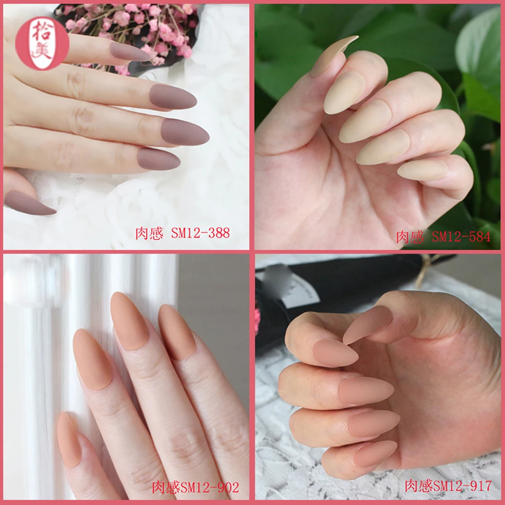 24 шт Матовый чистый цвет накладные ногти популярные дизайны клей на длинных концах накладные искусственные ногти для наращивания аксессуары для дизайна ногтей