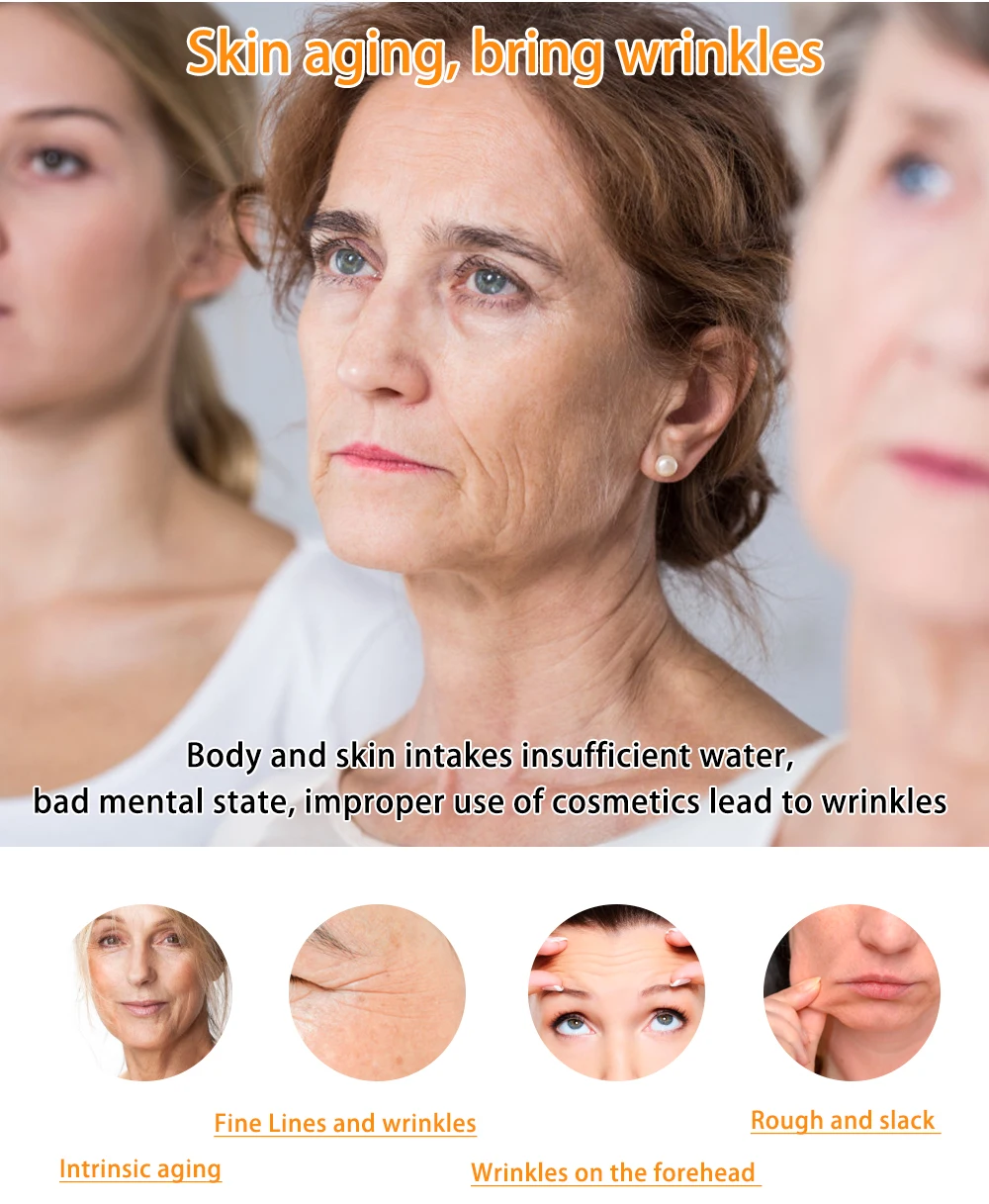 Старение кожи, разглаживание морщин Недостаточное количество воды в теле и коже, плохое умственное состояние, неправильное использование косметики приводит к появлению морщин Внутреннее старение Тонкие линии и морщины Морщины на лбу Грубые и слабые