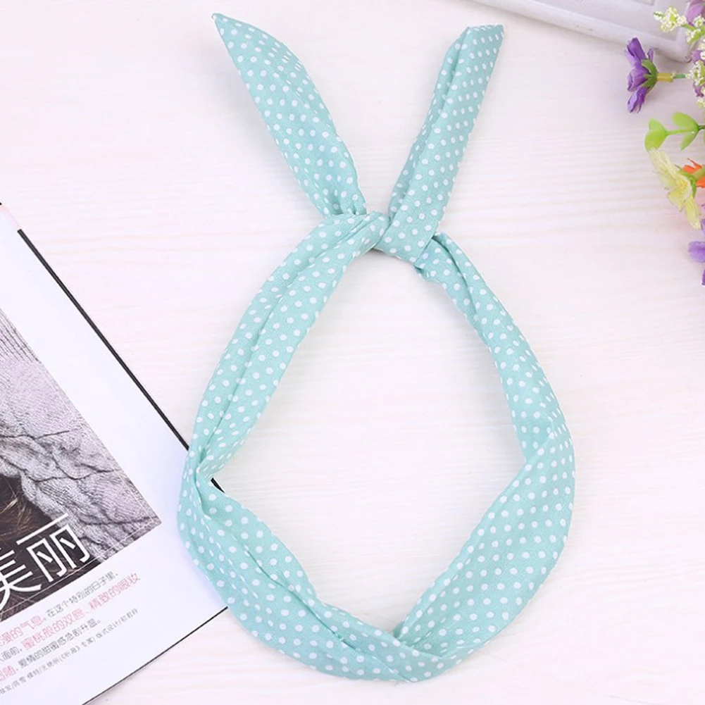 Цветочная полоска в горошек, лента с ушками кролика, лента для волос, металлическая проволока, шарф, повязка на голову с бантом