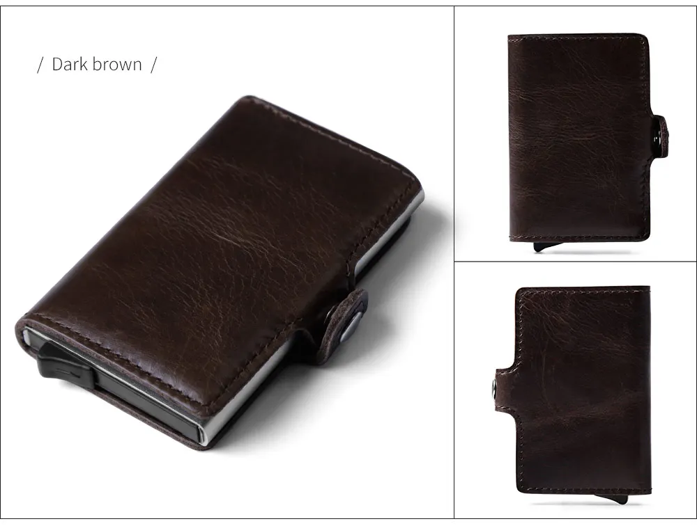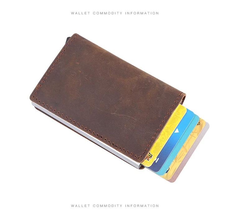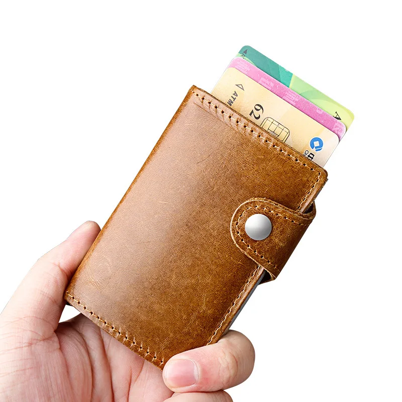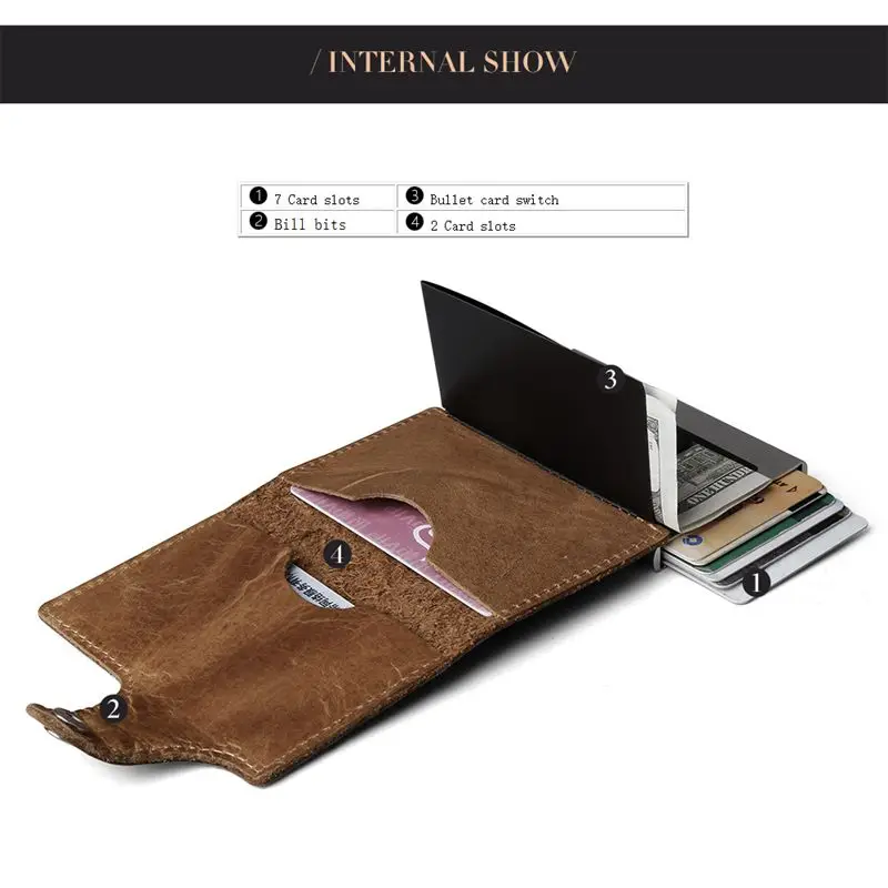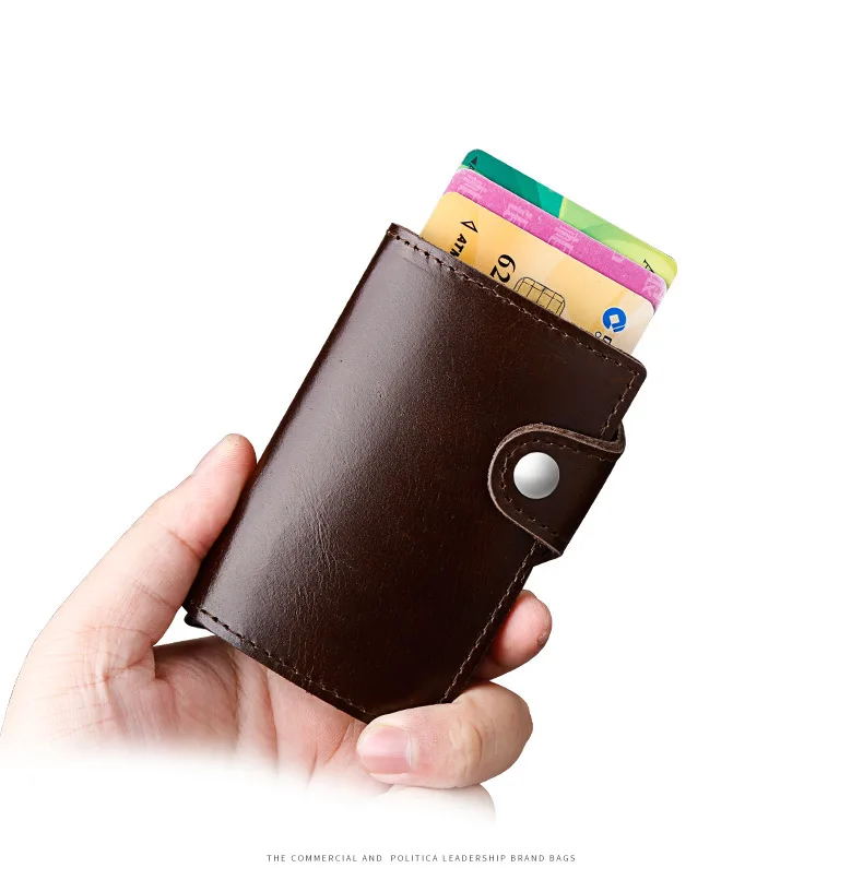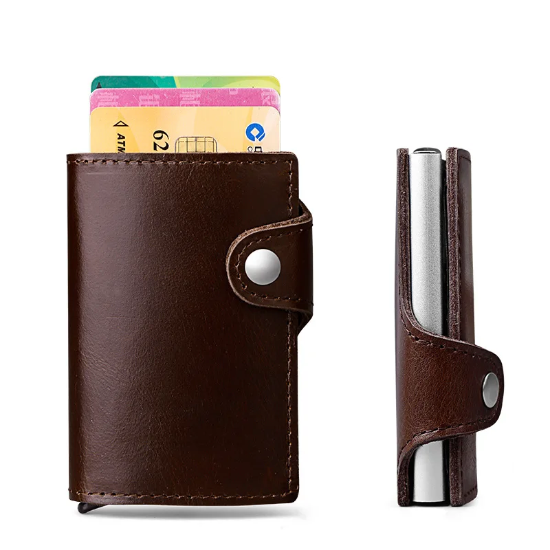 Мужской многофункциональный чехол-портмоне из натуральной кожи для визиток и кредитных карт из алюминиевого сплава