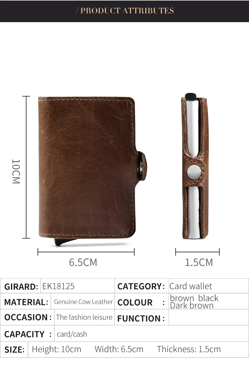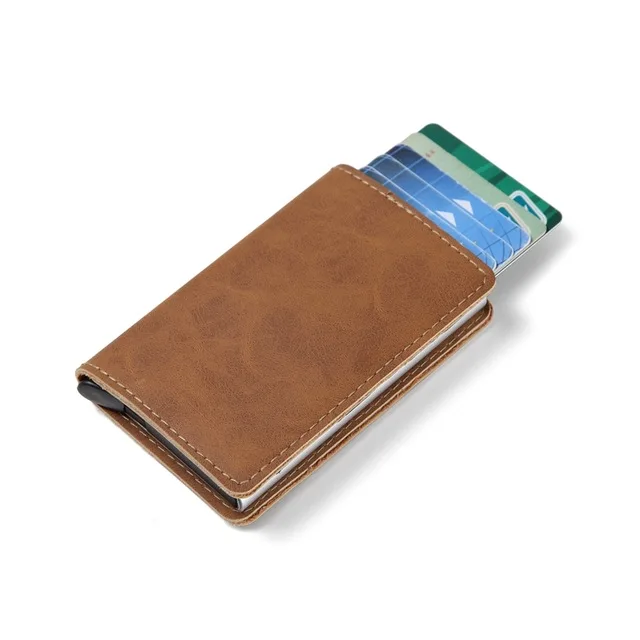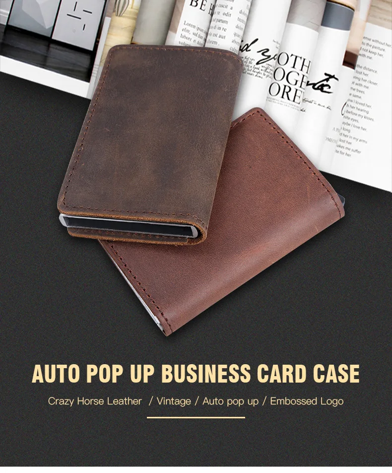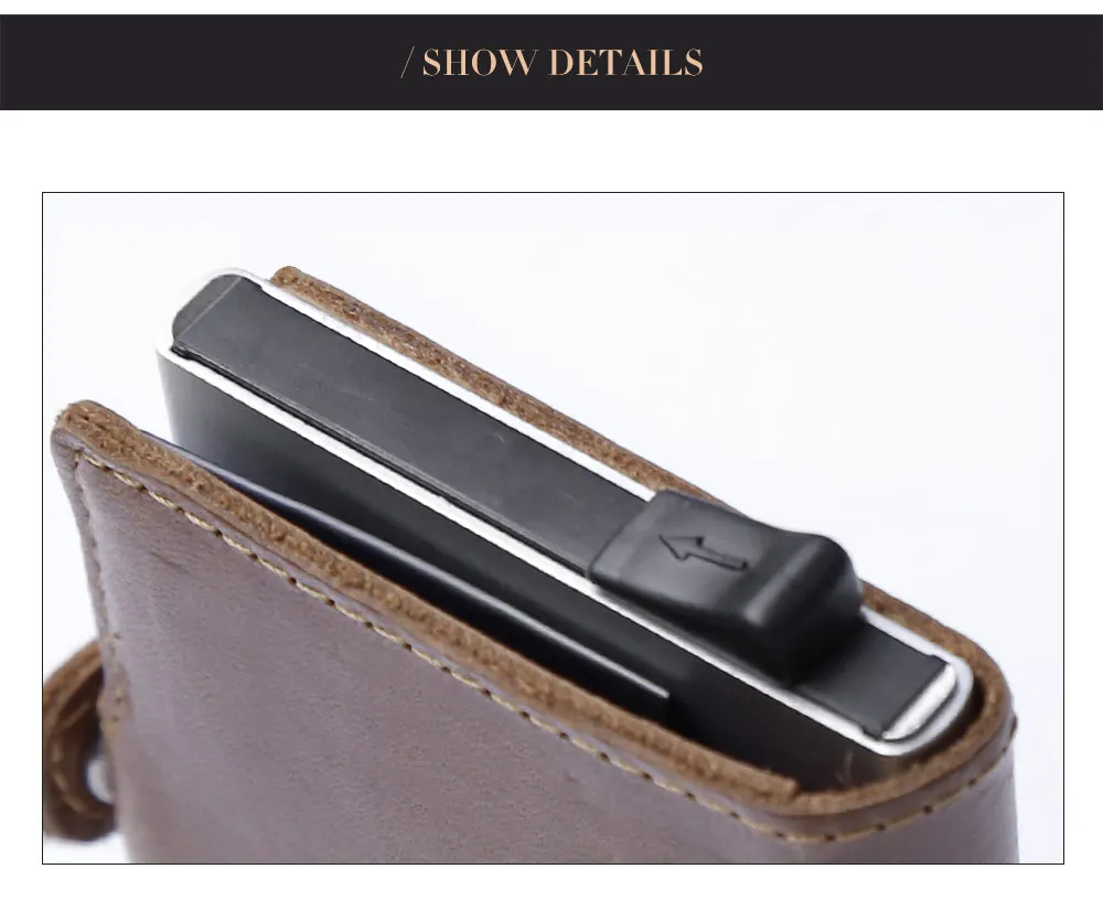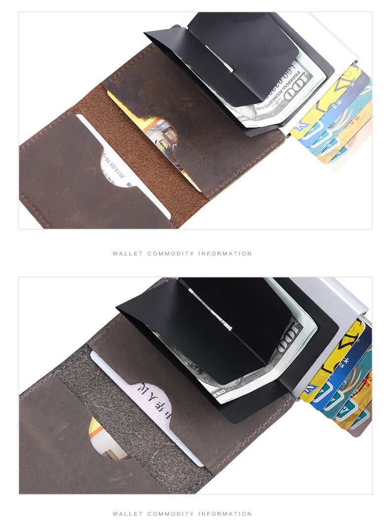 Мужской многофункциональный чехол-портмоне из натуральной кожи для визиток и кредитных карт из алюминиевого сплава