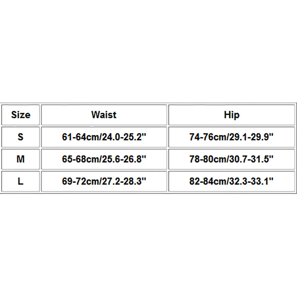 Примечание: Перед покупкой сравните подробные размеры с вашими! Используйте похожую одежду для сравнения с размеромРазмер Талия Бедра S 61-64 см/24,0-25,2 дюйма 74-76 см/29,1-29,9 дюйма М 65-68 см/25,6-26,8 дюйма 78-80 см/30,7-31,5 дюйма L 69-72 см/27,2-28,3 дюйма 82-84 см/32,3-33,1 дюйма