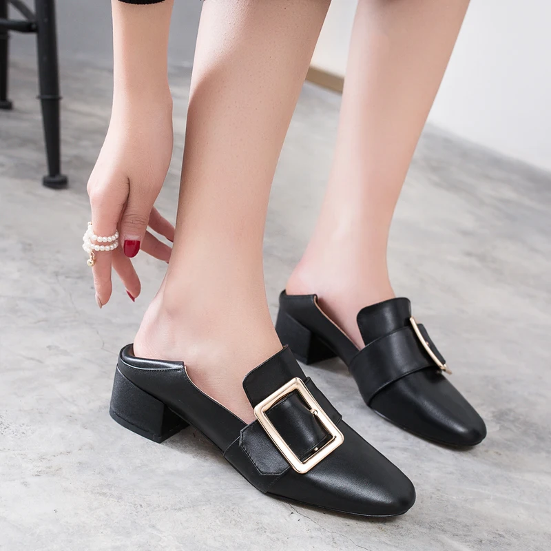 Туфли-лодочки из натуральной коровьей кожи; женские туфли на среднем каблуке; сезон весна; модные женские туфли с круглым носком; цвет черный, бежевый; женские туфли с закрытым металлическим украшением; G061