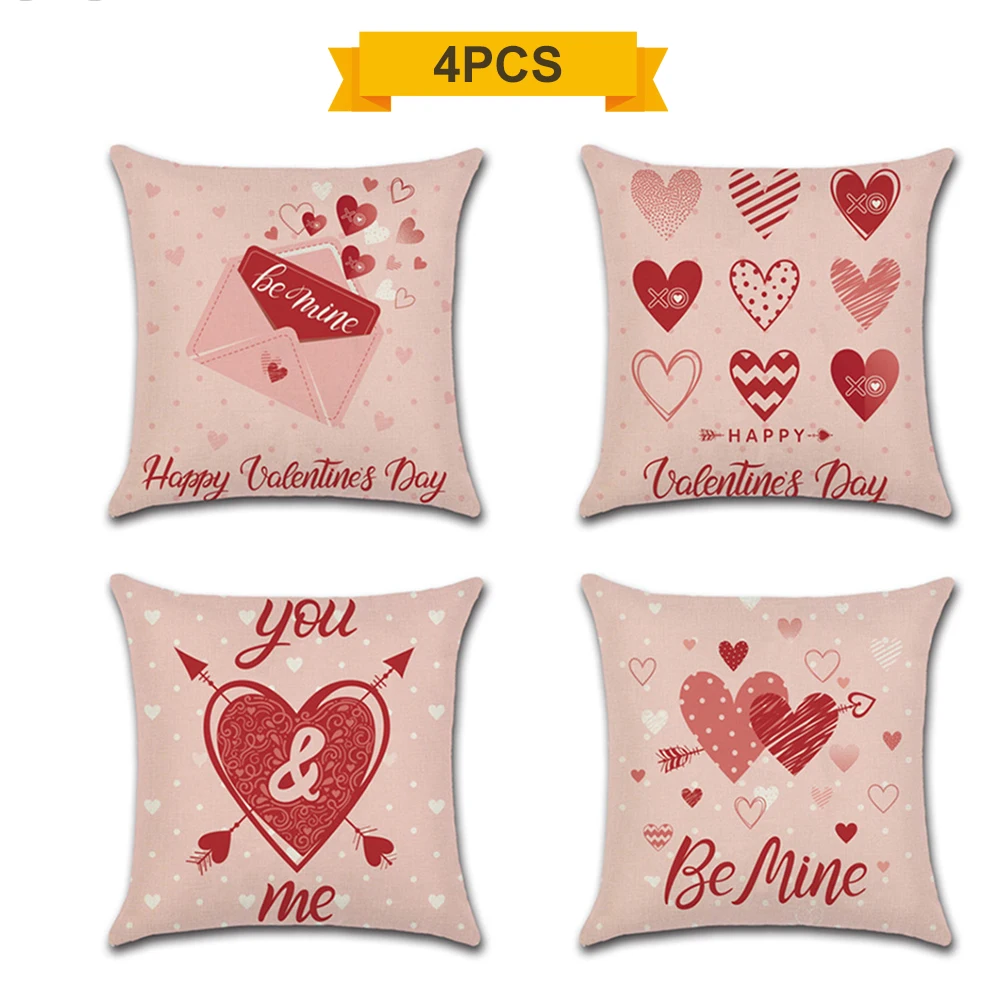 * 3. Комплект из 4 наволочек, тема Дня Святого Валентина, без наволочки
