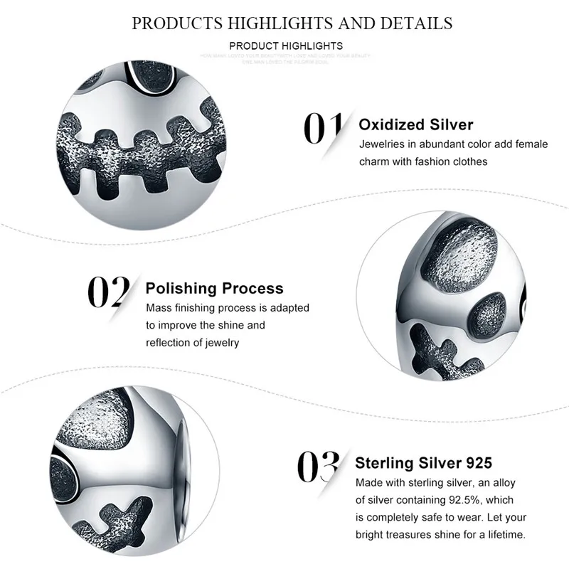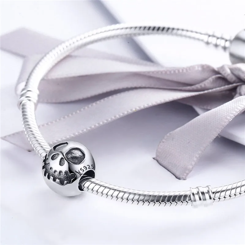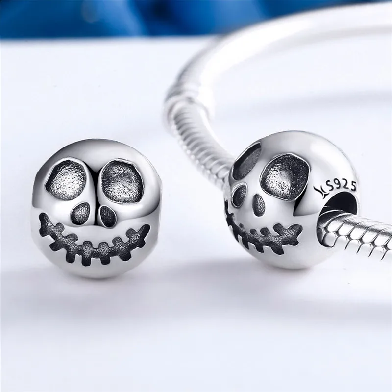 Аутентичные 100% 925 пробы серебряные креативные бусины с изображением лица Призрака и головы черепа браслеты DIY ювелирные изделия подарок на Хэллоуин SCC181