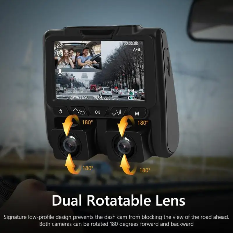 A1 Full HD 1080 P + 1080 P двойная вращающаяся линза Автомобильная dvr камера WDR g-сенсор Dash Cam циклическая запись видео рекордер