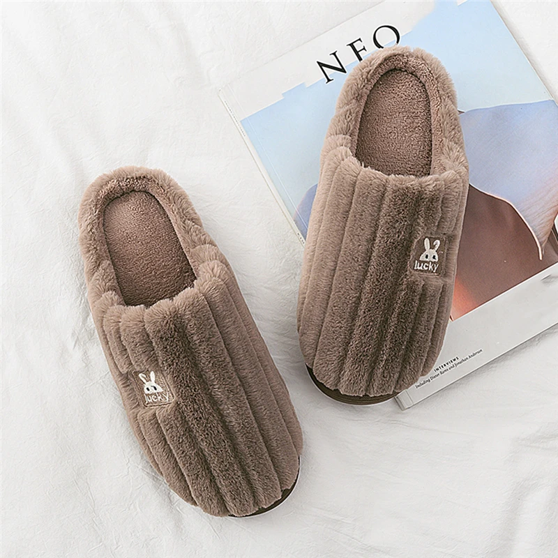 Пара моделей; Новинка; зимние мужские теплые тапочки с вышивкой кролика; нескользящие однотонные домашние шлепанцы на плоской подошве; обувь для спальни; A40