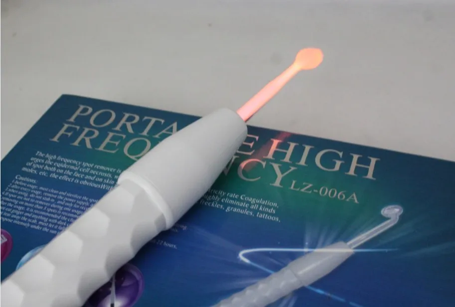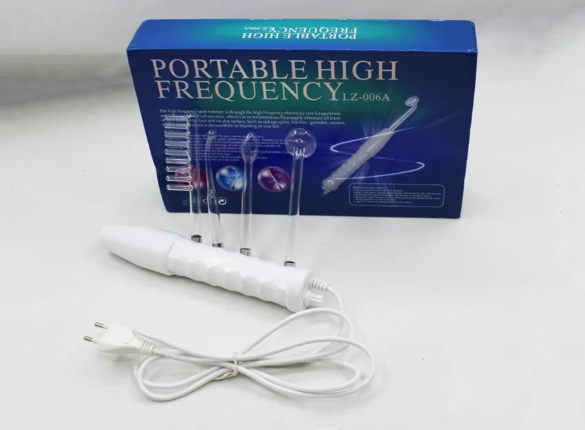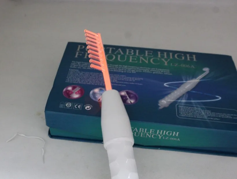 Процедуры работы: 1. Непрямой метод ---- подходит для сухой натуральной кожи и состаренной кожи Пожалуйста, закрутите стеклянную трубку в ручную часть. Пожалуйста, удерживайте стеклянную трубку после прикосновения к порошку талька. Включите машину, и электричество пройдет. Сделайте массаж на лице от шеи до подбородка и от козырька до лба. 2. Прямой метод ---- подходит для жирной натуральной кожи Сначала Смажьте эссенцию и крем на лицо, а затем удерживайте металлическую планку, чтобы положить стеклянную трубку на лицо. Включите машину. Массаж со стеклянной трубкой как "Z" или спираль на лице, сделать лечение следующим образом, лоб -- нос -- правая сторона лица -- подбородок -- левая сторона лица -- нос -- лоб. 3. Блестящий метод ---- подходит для ран, боли и воспаления Закройте глаза кусочком влажной ткани и прикоснитесь к лицу со стеклянной трубкой на части воспаления. За один раз лечение должно быть менее 10 сек. Это нормально, если есть блестки, выходящие, в то время как стеклянная трубка касается лица. 4. Метод ухода за волосами ---- подходит для стимуляции уменьшения поверхности кожи Фолликулит и улучшение здорового роста волос Используйте расческу (вместе со штанами гораздо лучше). В направлении волоса для перемещения гребня. Пожалуйста, настройте интенсивность на "0" после использования. Убедитесь, что машина выключена и извлекла стеклянную трубку из ручного куска. В комплект входит: 1 х основная машина 1 x стеклянная трубка электрода (расческа, трубка языка, Грибная трубка, трубка изгиба) 1 Инструкция пользователя 1 x коробка
