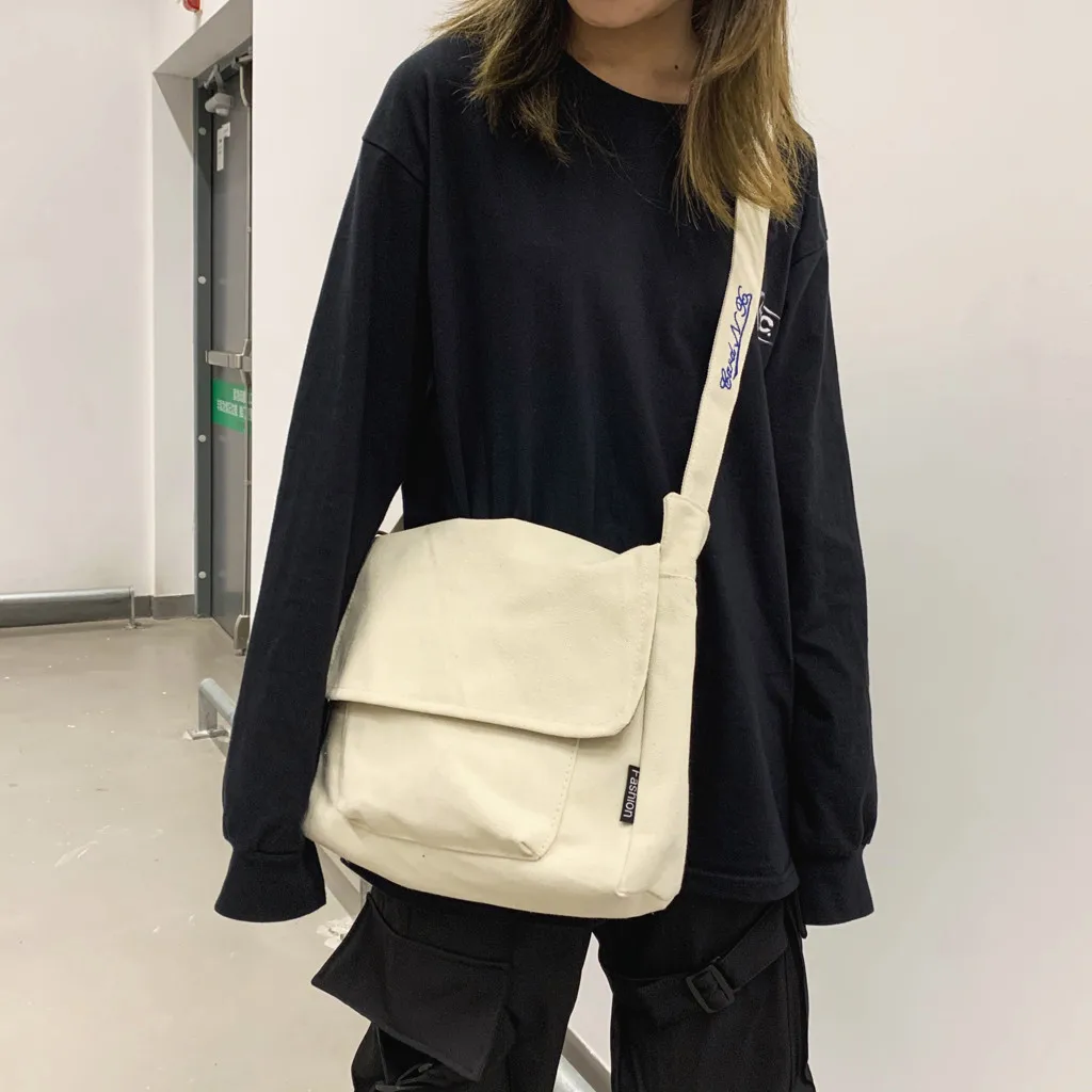 Женская и мужская сумка через плечо, сумка через плечо, винтажная холщовая модная простая повседневная большая вместительность H1