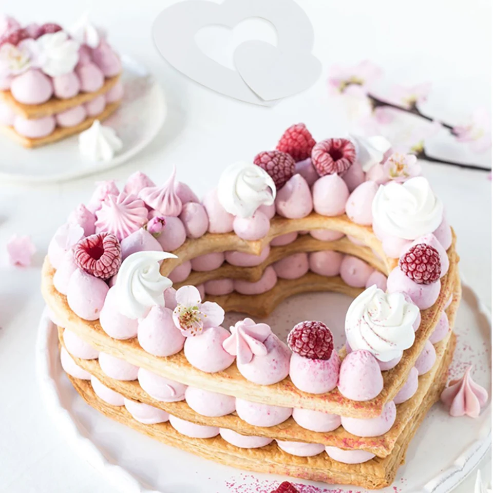 Просто положите количество формы для торта на торт, затем нарежьте желаемую форму по краю формы ножом.