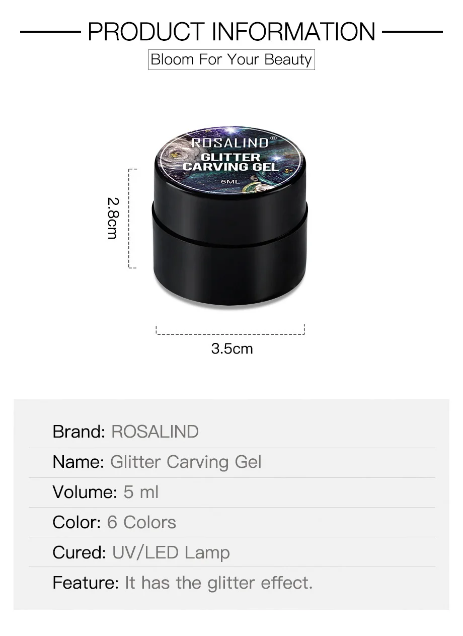 ROSALIND 5 мл Блестящий резной гель Яркий для дизайна ногтей светодиодный/УФ-лампа