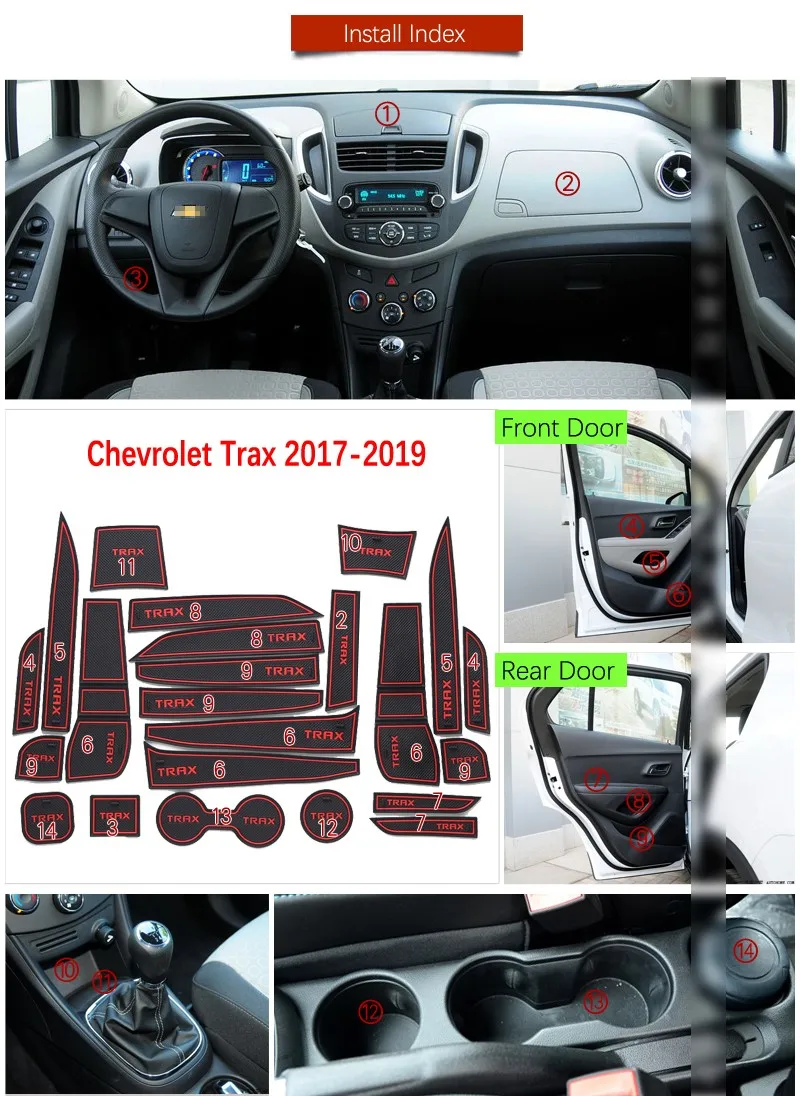 Аксессуары для Chevrolet Trax Tracker Holden 2017 2018 2019 MY17 MY18 MY19 Chevy Авто assessoires интерьер для Chevrolet Trax Tracker Holden 2017 2018 2019 MY17 MY18 MY19 Chevy Материал: резина особенность: Простая установка, без каких-либо инструментов Примечание: Из-за того, что светильник отличается, возможно, фотографии в описании будут отличаться от реальных цветов. Любые неудобные, искренне надеемся на ваше понимание. Пожалуйста, проверьте циновка чашки размер транспортного средства перед тем, как вы сделаете покупку. Спасибо за понимание. 23 шт./компл.