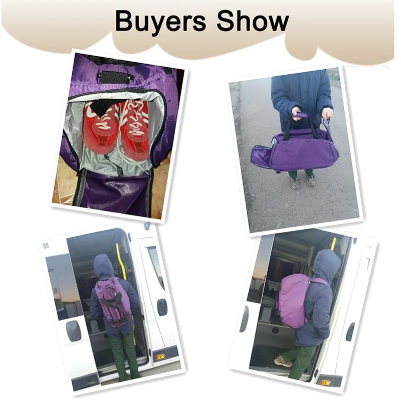 1. Дизайн карманов для обуви-этот спортивный вещевой мешок имеет два отдельных отделения на молнии с левой и правой стороны для обуви, белья или грязного хранения снаряжения.