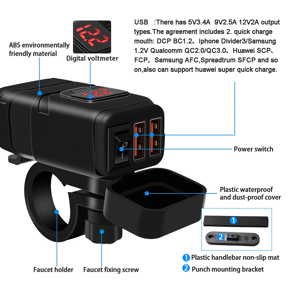 * Тип товара: мотоцикл SAE на двойной QC 3,0 USB зарядное устройство вольтметр