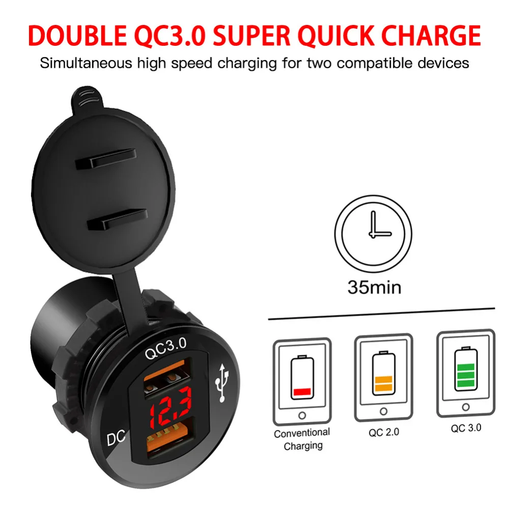 USB 30 Вт QC 3,0 Быстрая Зарядка адаптер питания с переключателем водонепроницаемый светодиодный вольтметр DC12V-24V автомобильное зарядное устройство
