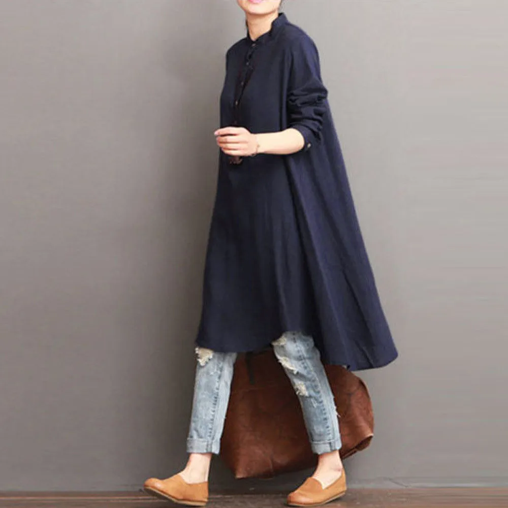 Womens Kaftan Cotton Linen Long Sleeve Loose Blouse Tops Shirt Baggy Pullover