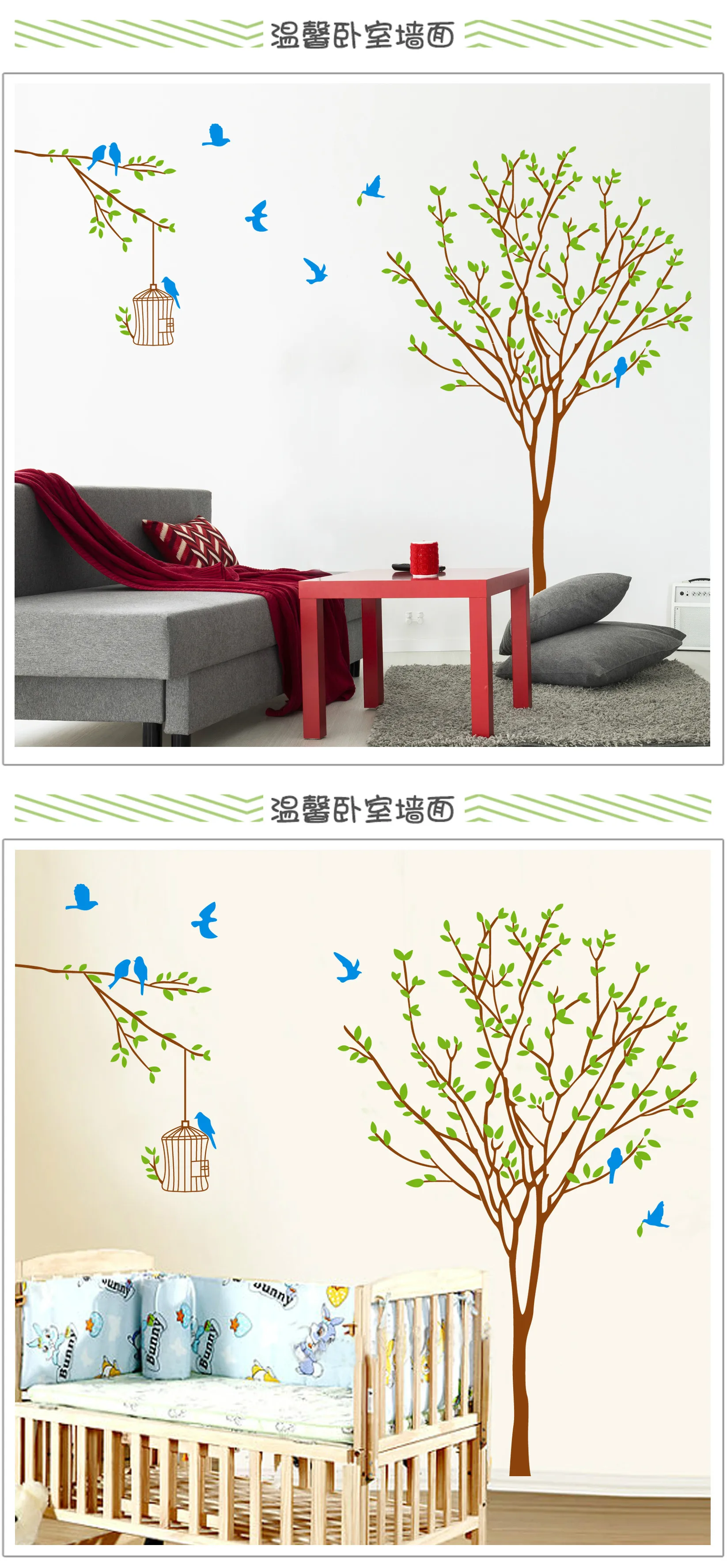 3D домашнее детское большое зеленое дерево Декор птиц настенные бумажные наклейки s для гостиной спальни украшения ТВ стикер DIY плакат дом