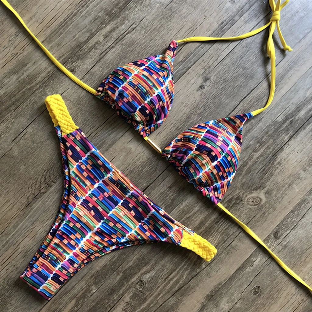 Женский купальник в радужную полоску, купальник бикини бандаж, танкини, пляжный