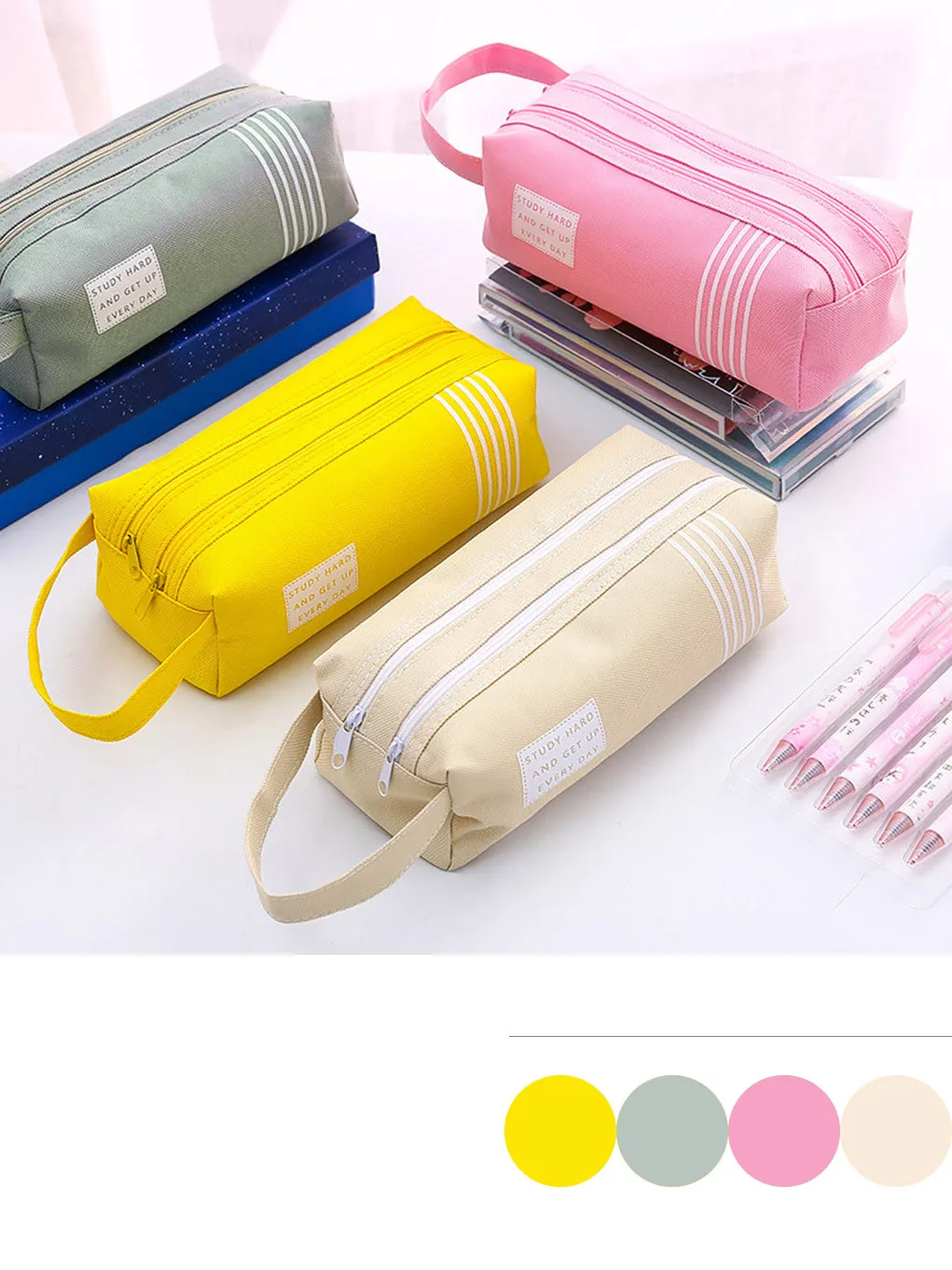 Двойной Слои большой Ёмкость из парусины застежка-молния карандаш чехол каваи ручки канцелярских принадлежностей для хранения Чехол школьный Карандаш Чехол школьные принадлежности