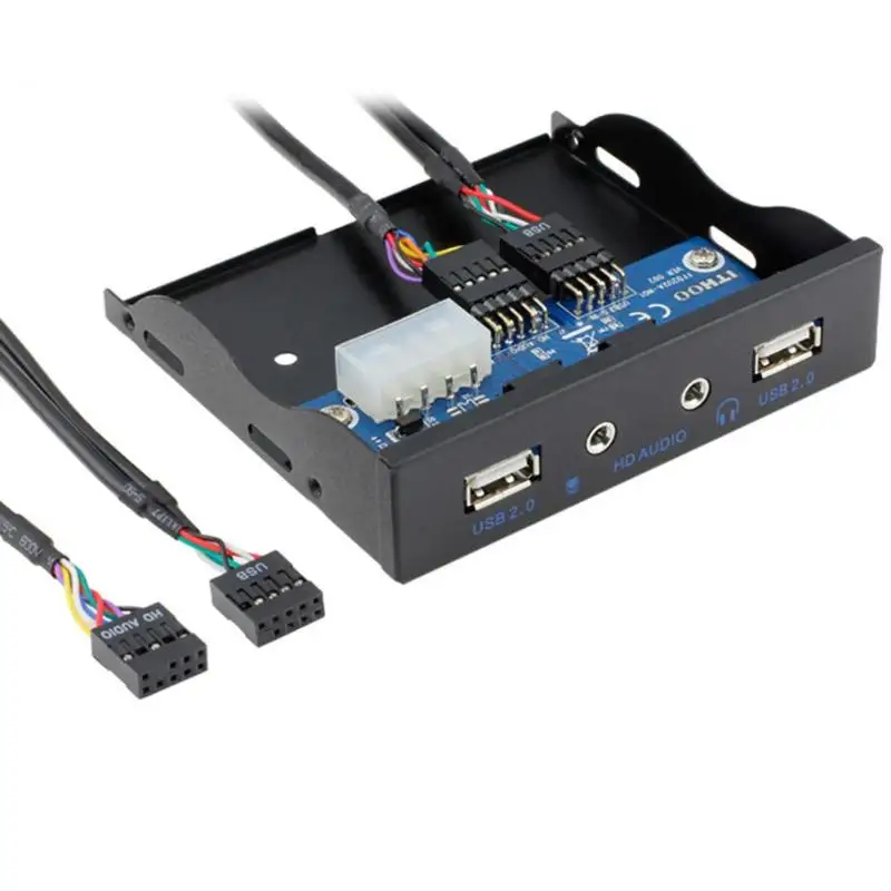 3,5 дюймов 9Pin с 2 портами USB 2.0 Порты и разъёмы концентратор Floppy Bay HD Audio 3,5 мм разъем для наушников расширения спереди Панель стеллаж для выставки товаров для компьютера ПК со звуковым кабелем 9PIN-9PIN
