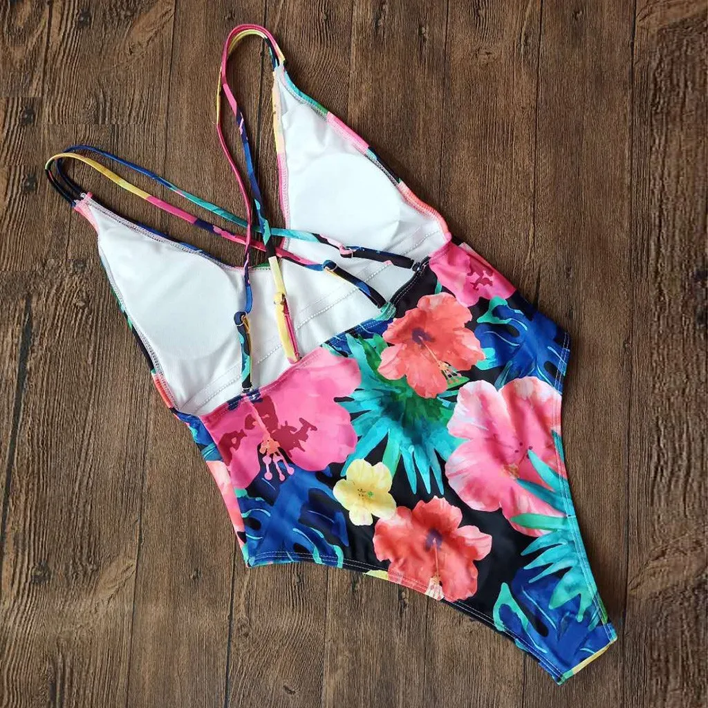 Новинка 2020, Модный женский бикини с цветочным принтом и высокой талией, цельный купальник пуш-ап для пляжа, Модный Купальник для отдыха # gh