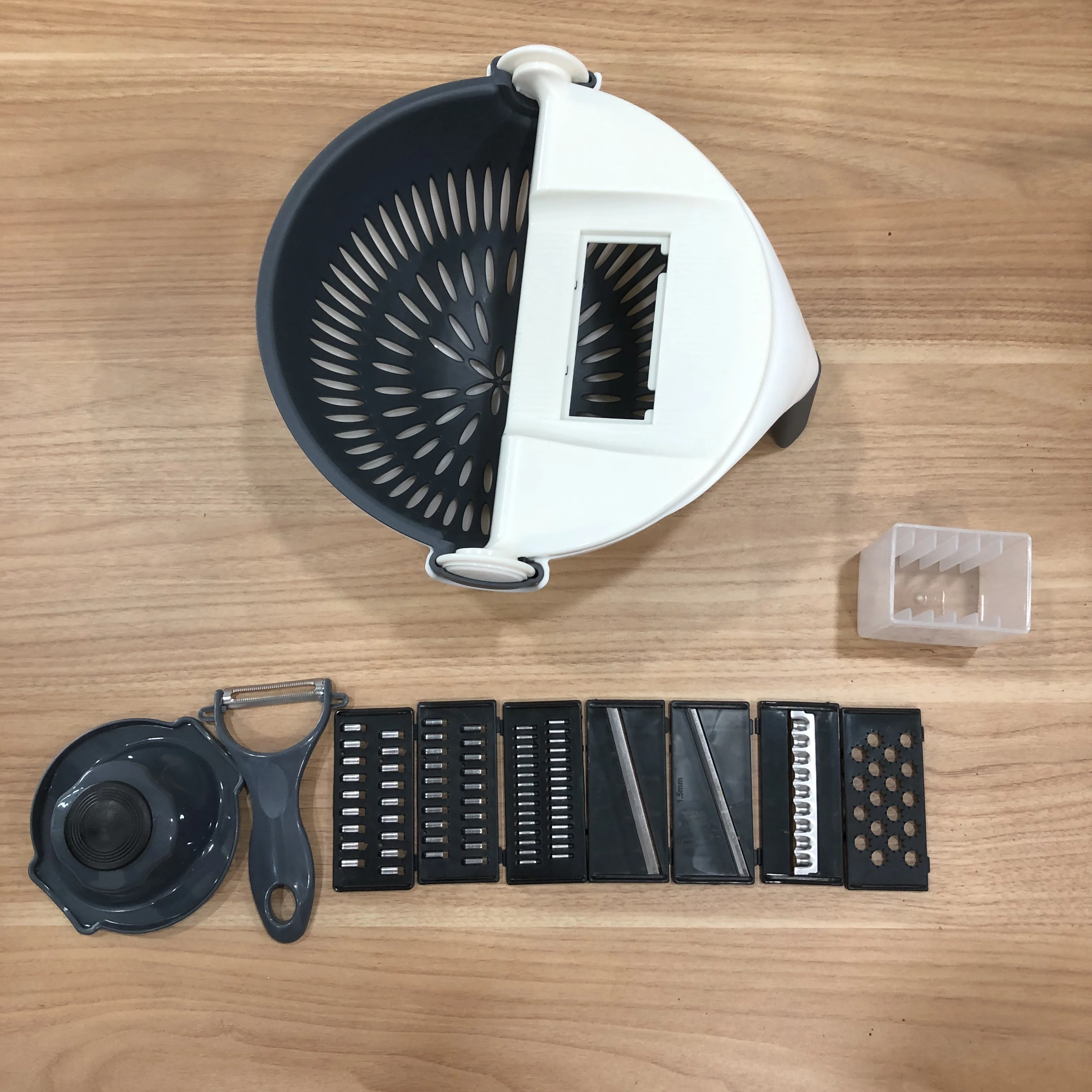 2,5 мм толстый нож головки: легок и прост в использовании, сэкономить время и силы хороший помощник. 2 мм режущая головка ножа: плотная и деликатная, подходит для coleslaw.