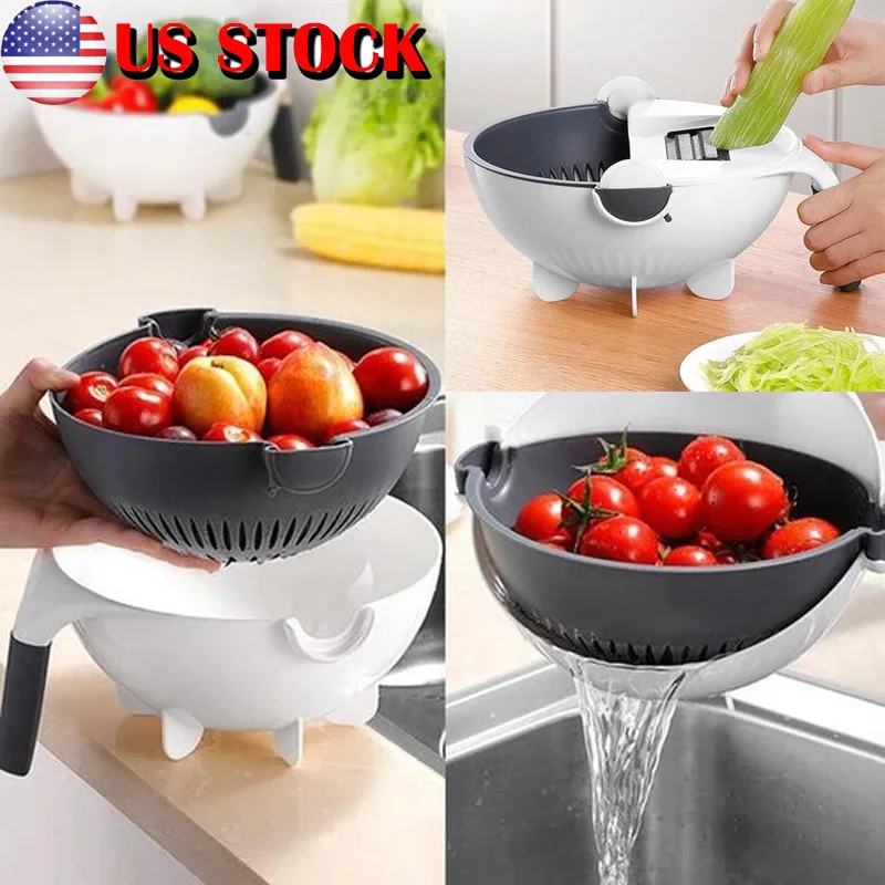 Кухонный помощник: резка и стирка, легко и быстро, вращающаяся пряжка, Автоматический угол вращения, Асфальтовая корзина всегда устойчива, легко моется овощей и дренажа.
