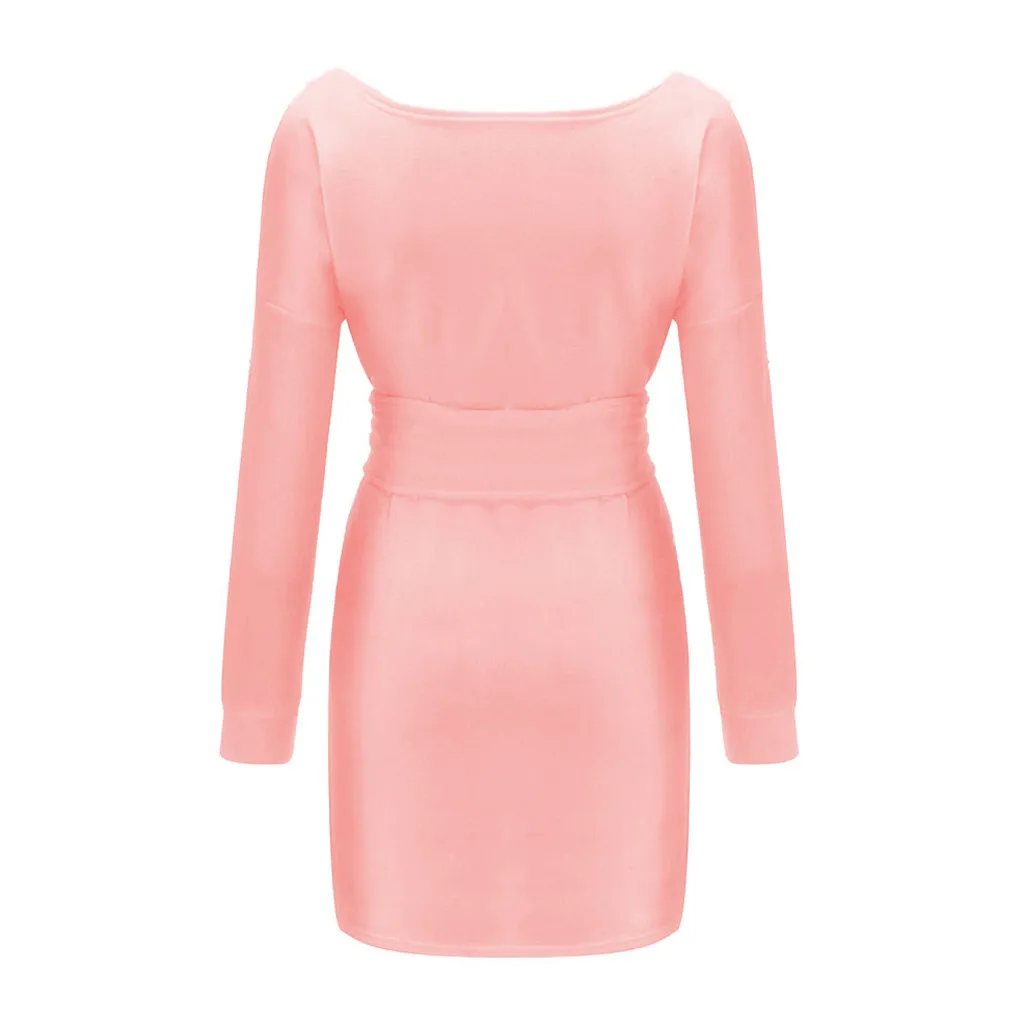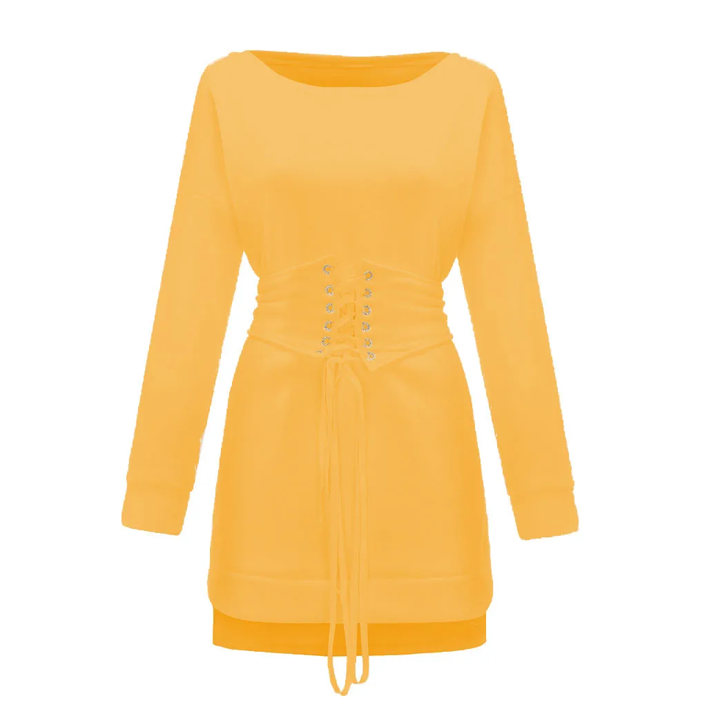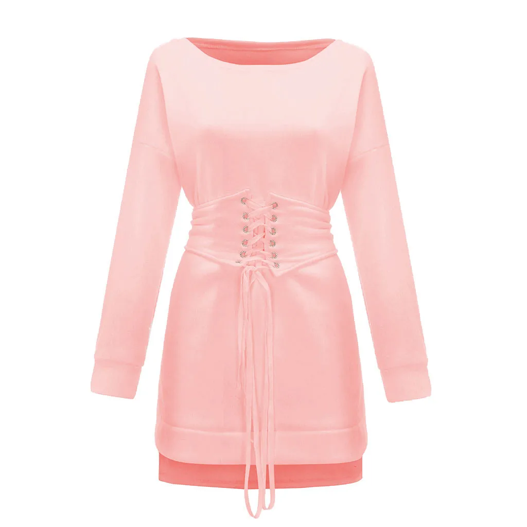 Женское плотное флисовое платье с круглым вырезом и длинным рукавом + пояс с поясом