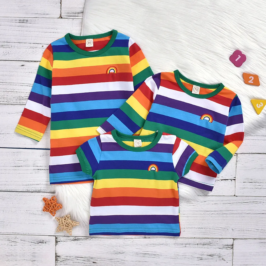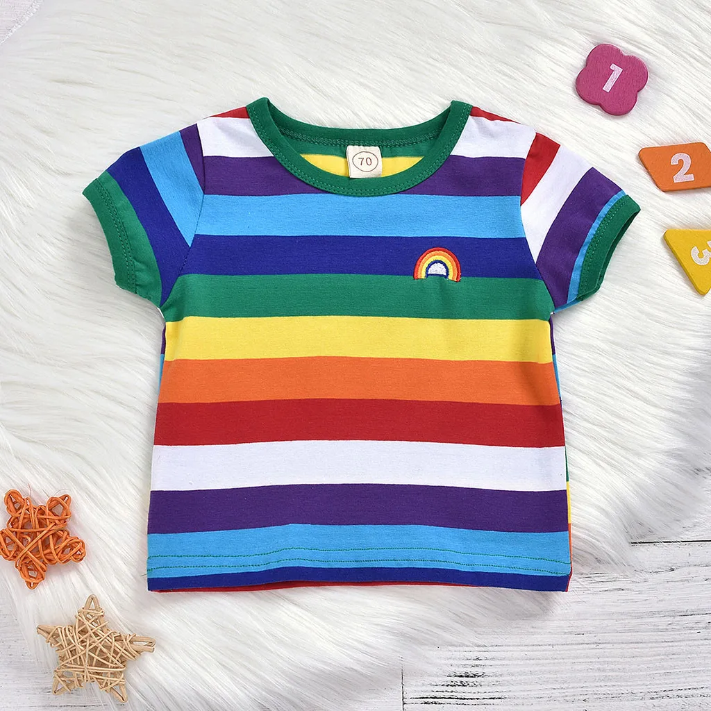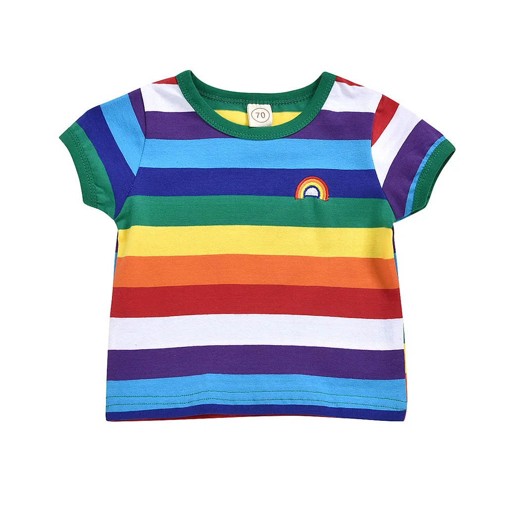 Футболка с короткими рукавами для маленьких мальчиков и девочек, топы в радужную полоску с принтом