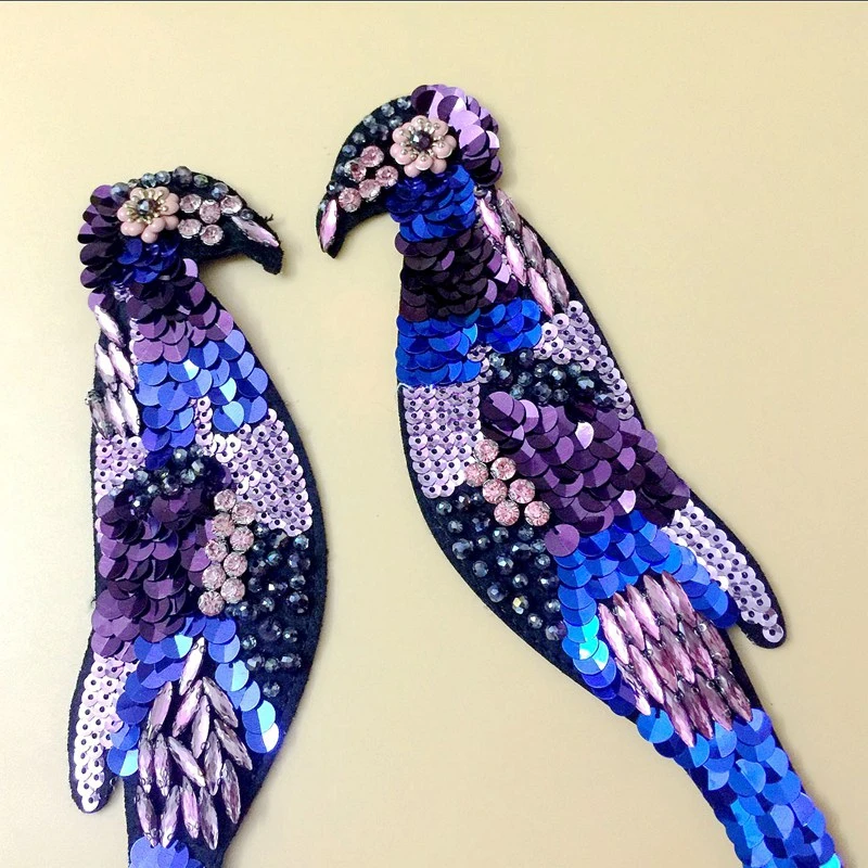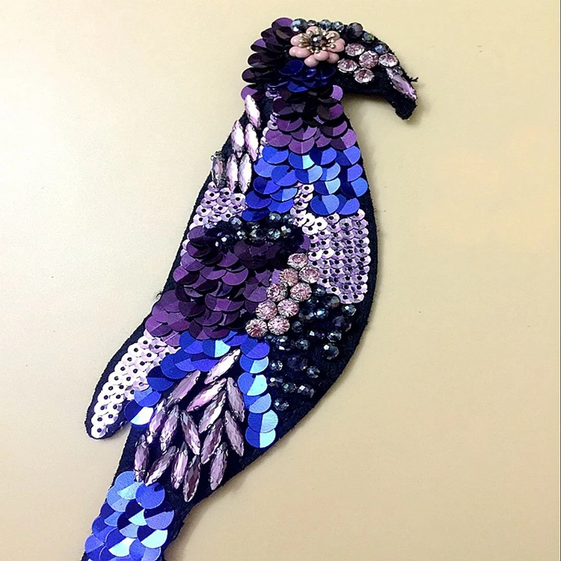 Синий Nagao Птица Кристалл бисера Вышивка Аппликация Стразы пайетки Ткань свитер Одежда патч наклейки футболка сделай сам украшение